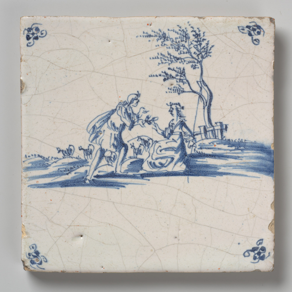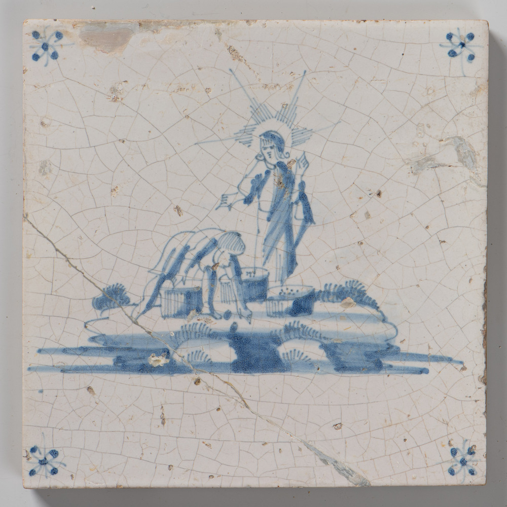 tegel van aardewerk met tinglazuur, voorstellende: d...
