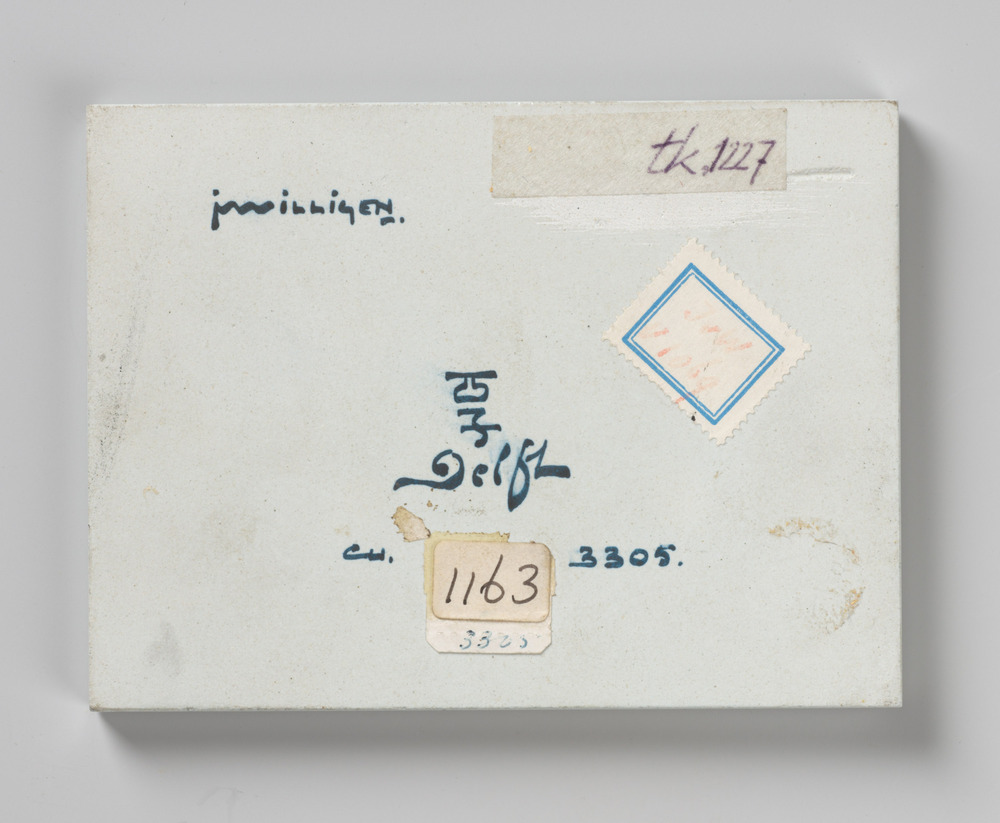 tegel van aardewerk met tinglazuur, voorstellende: k...