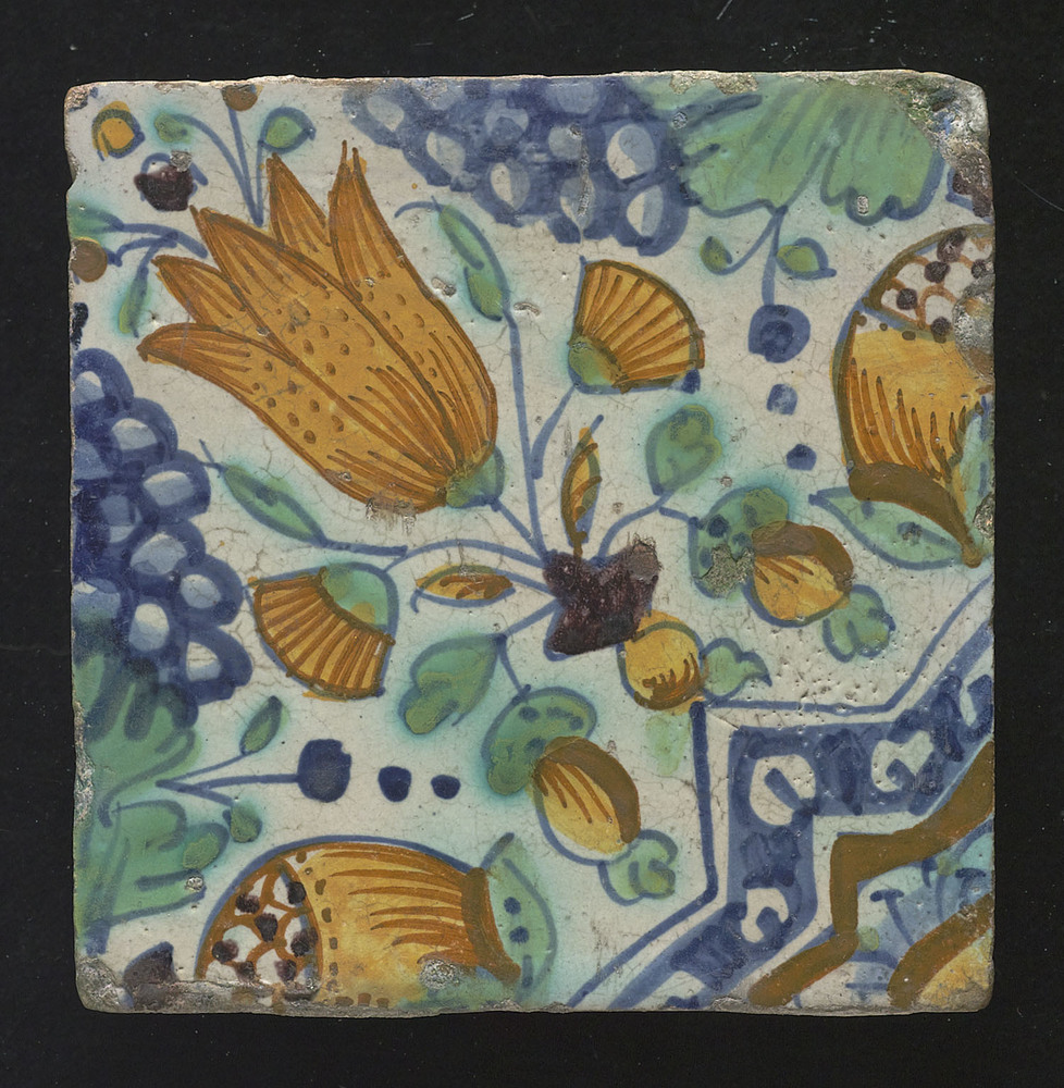 tegel van keramiek met tinglazuur, voorstellende: or...
