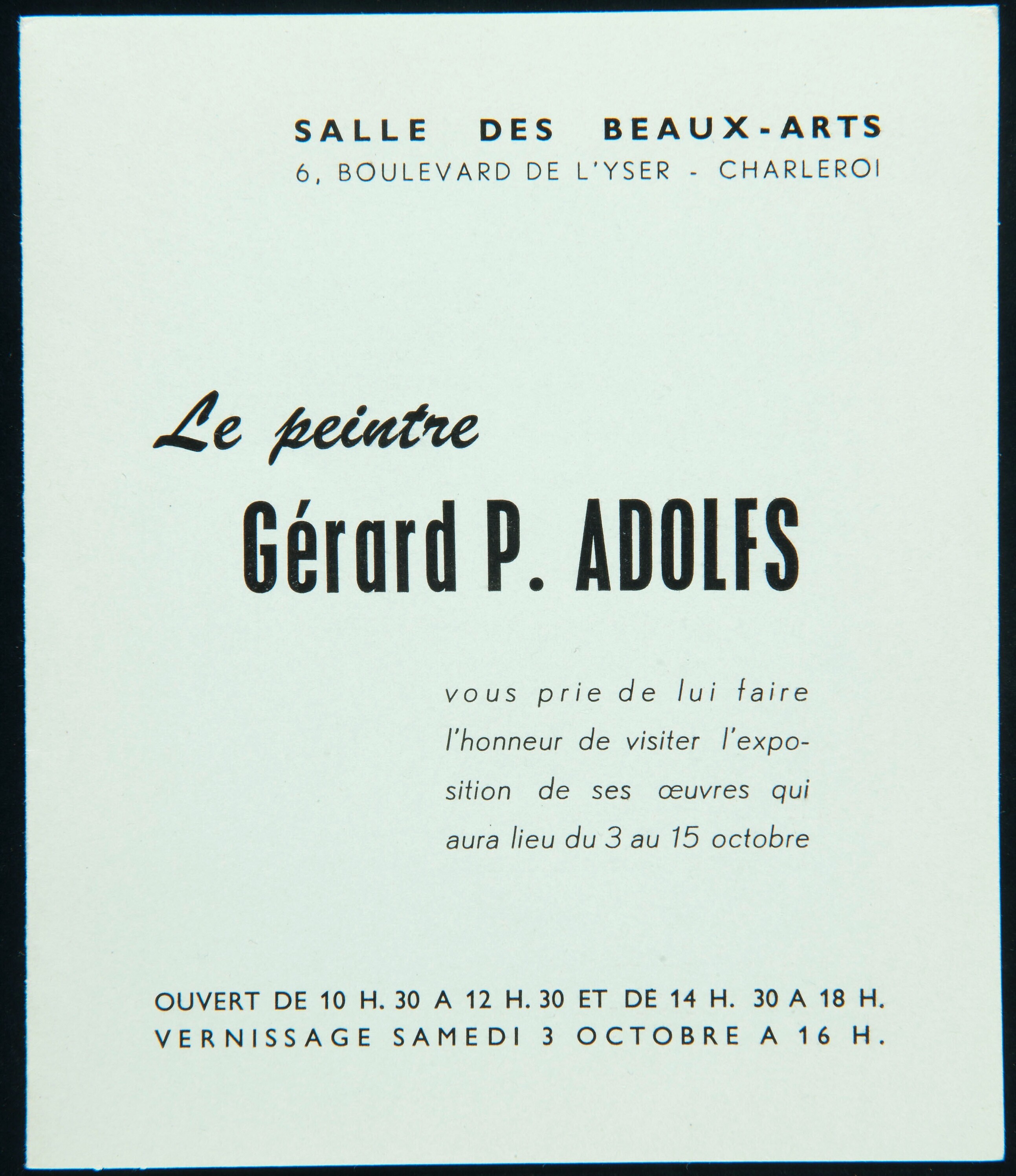 Uitnodigingskaart 'Le peintre Gérard P. Adolfs - Sal...