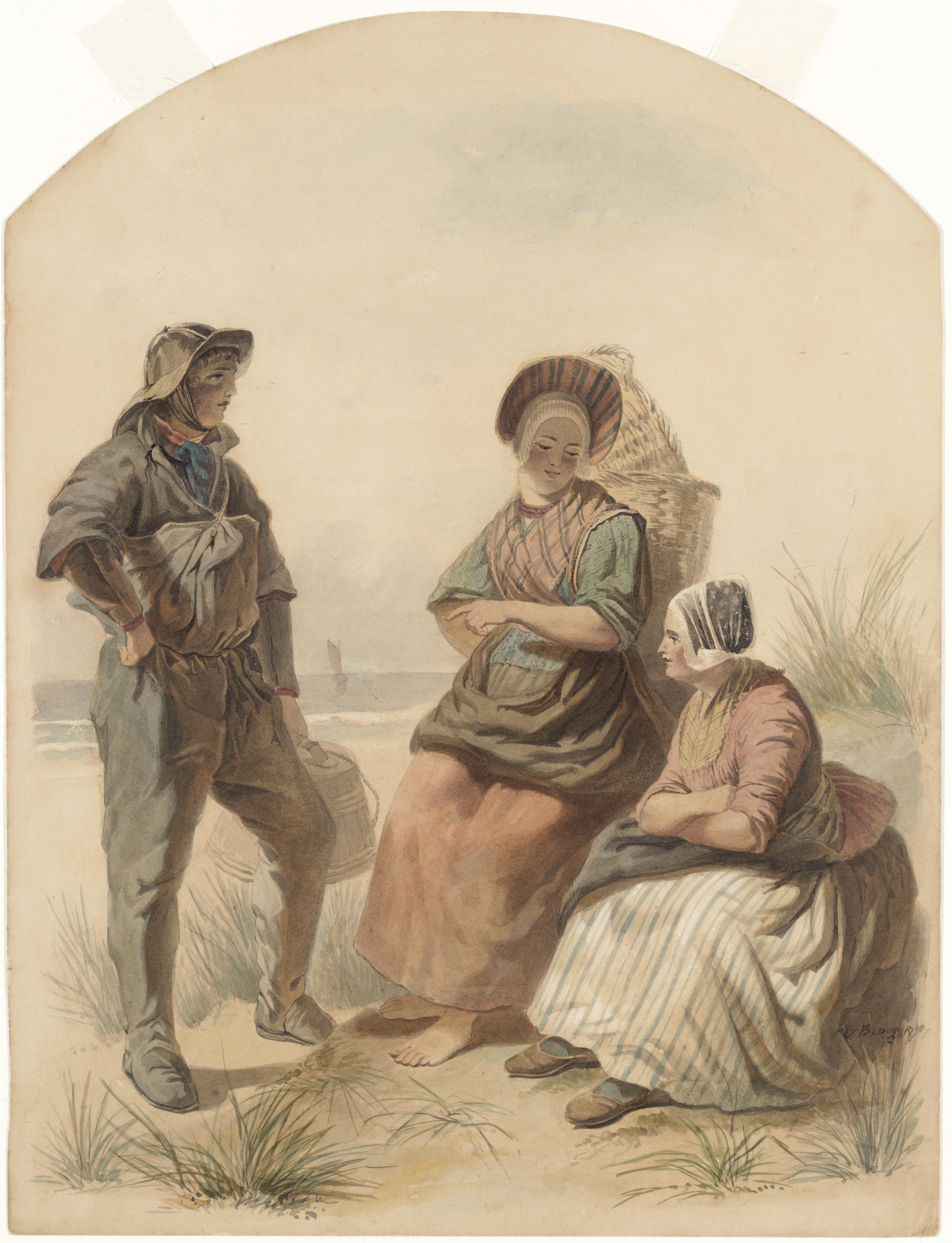 Vrouwen, man en kind in de dracht van Bunschoten cir...