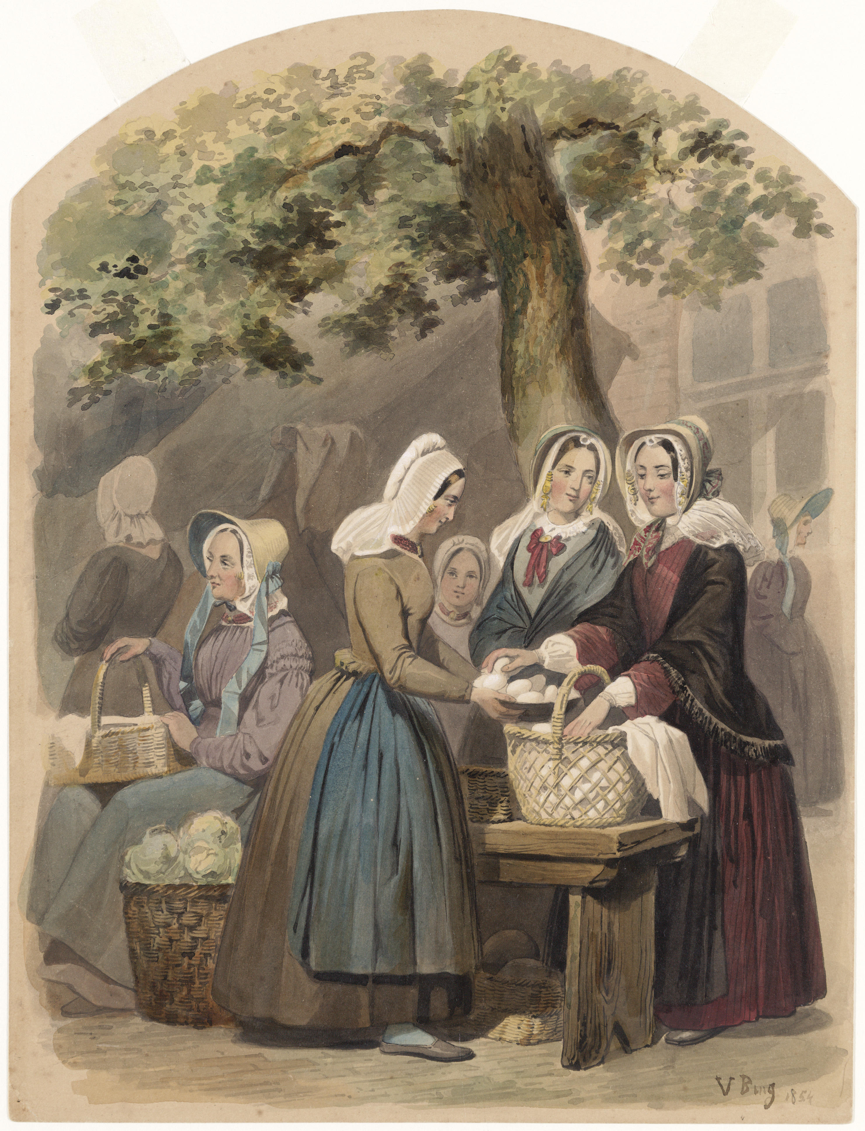 Vrouwen in de dracht van Schouwen en Duiveland op de...
