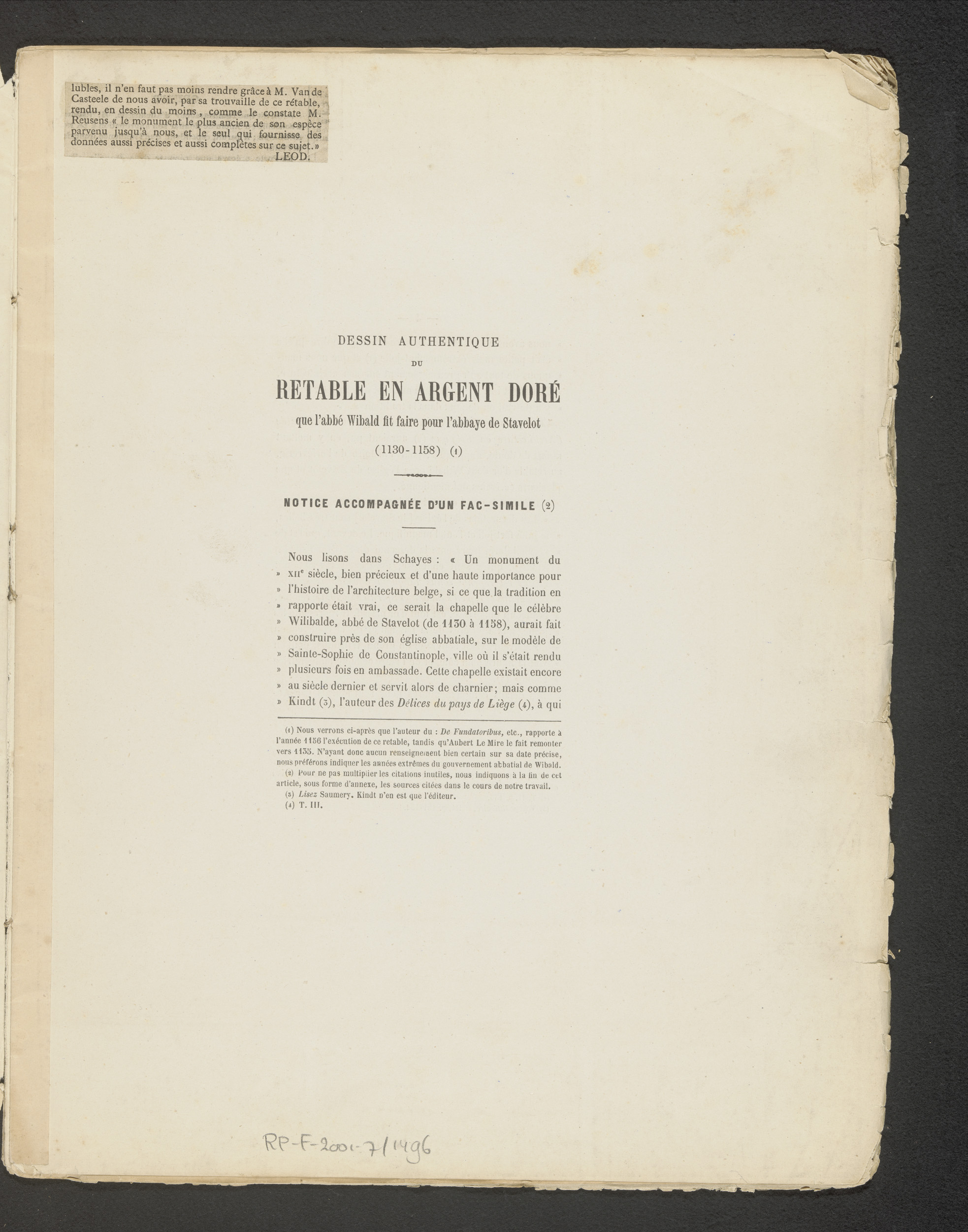 Dessin authentique du retable en argent doré que l'a...