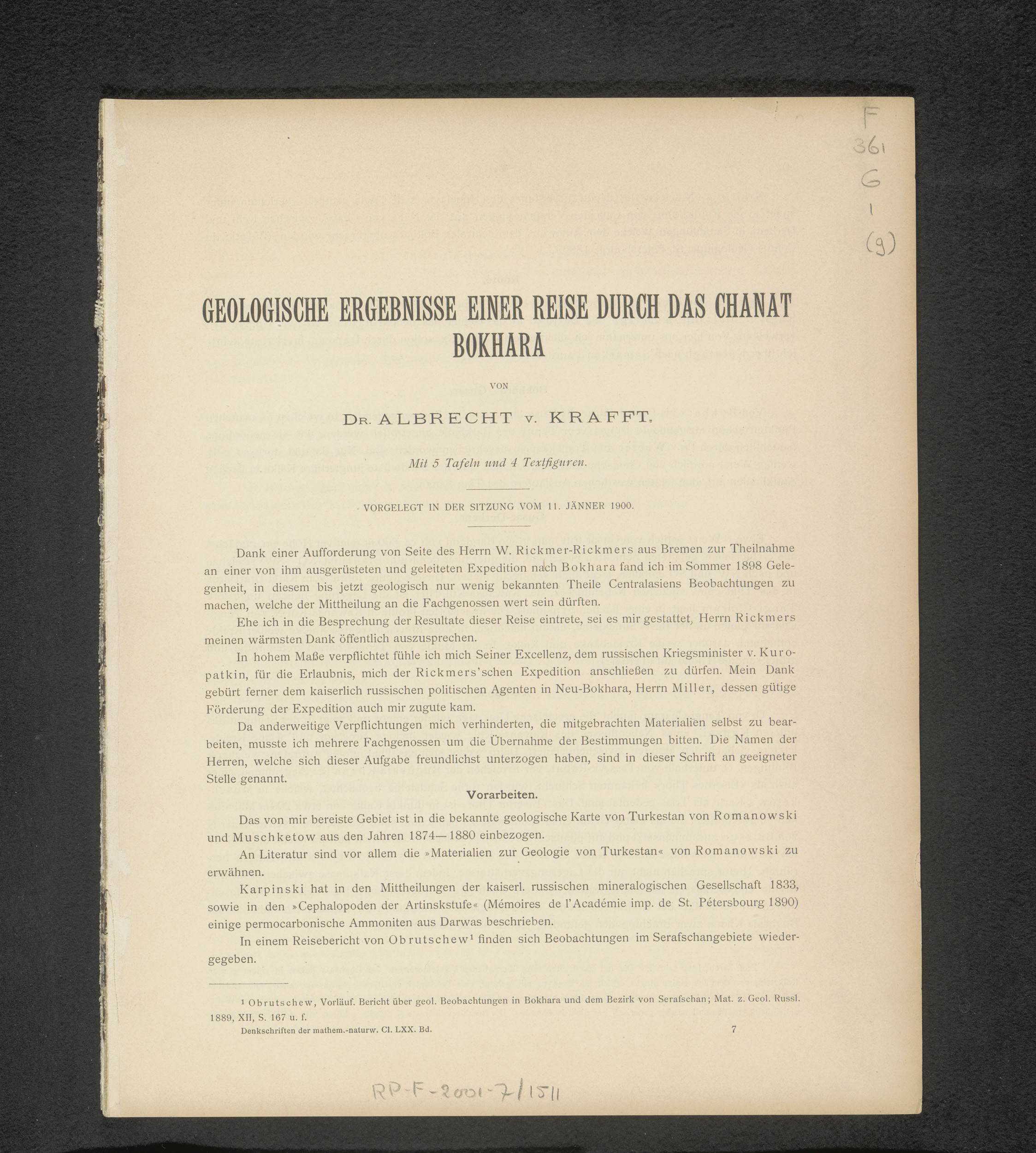 Geologische Ergebnisse einer Reise durch das Chanat ...