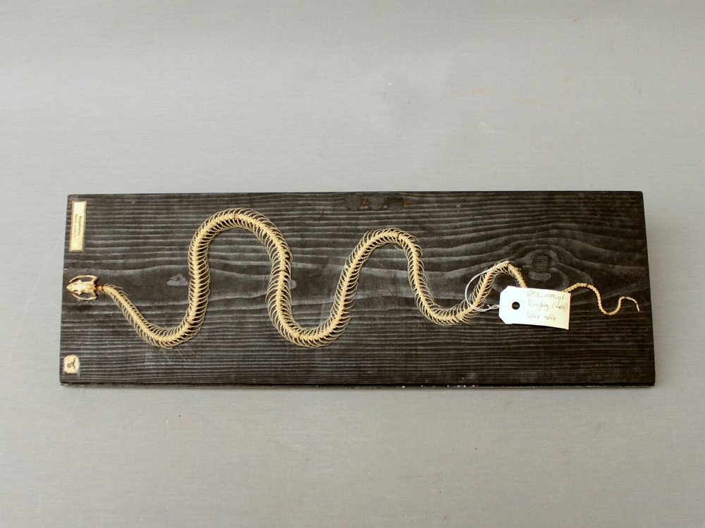 Ringslang; skelet; op plank