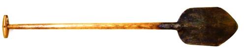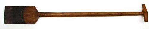 Veen- of baggerspade van hout met ijzerbeslag gebrui...