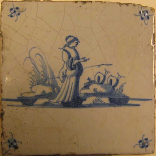Tegel met herder en herderin, blauw