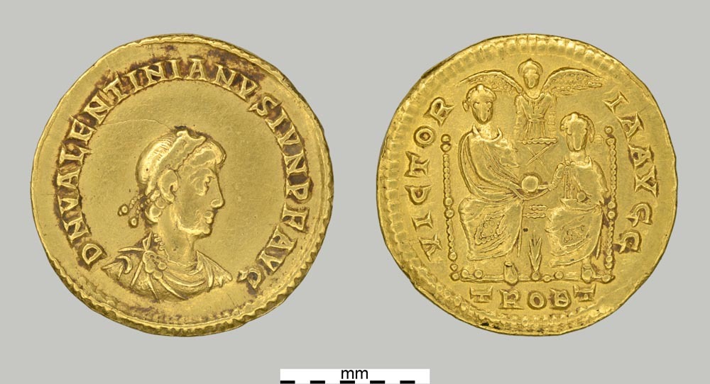 Solidus van Valentinianus II, munt van goud uit de R...