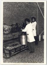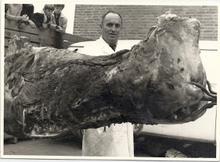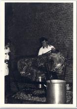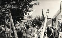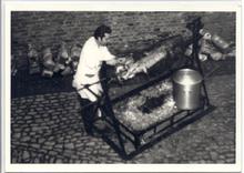 Domburg, tijdens de feesten roosteren van een varken...