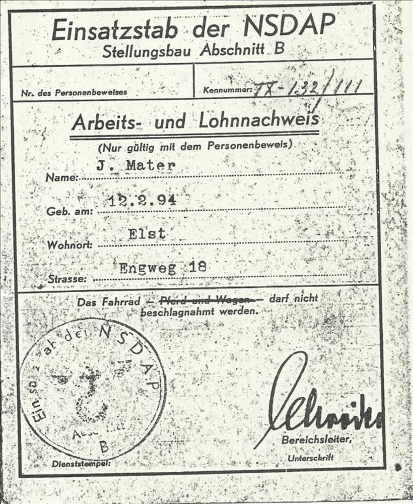 Arbeits - und Lohnachweis ( Einsatzstab der NSDAP St...