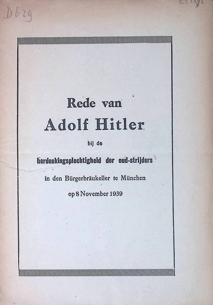Brochure: Rede van Adolf Hitler bij de herdenkingspl...