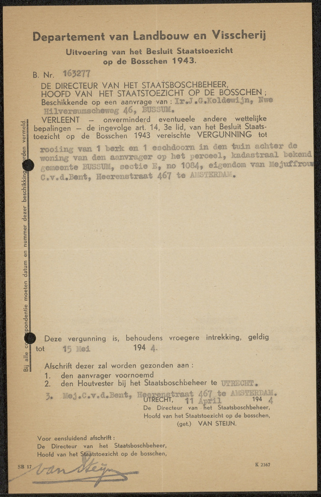 Rekening voor Mej. C. v.d. Bent te Amsterdam