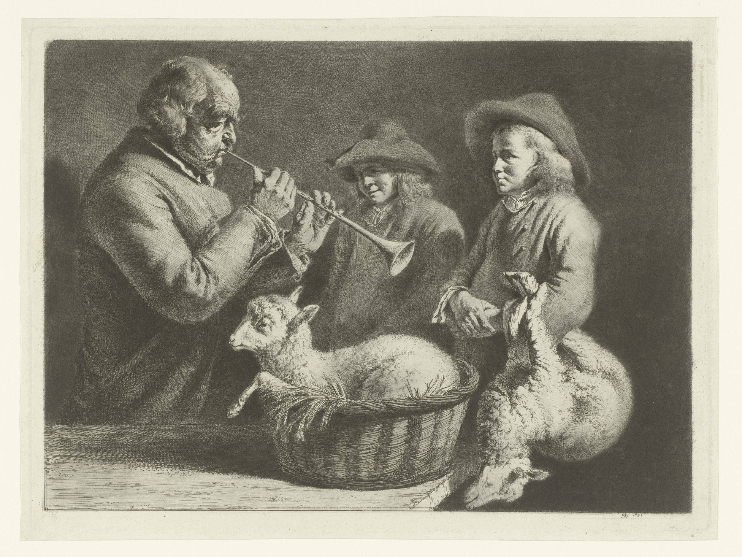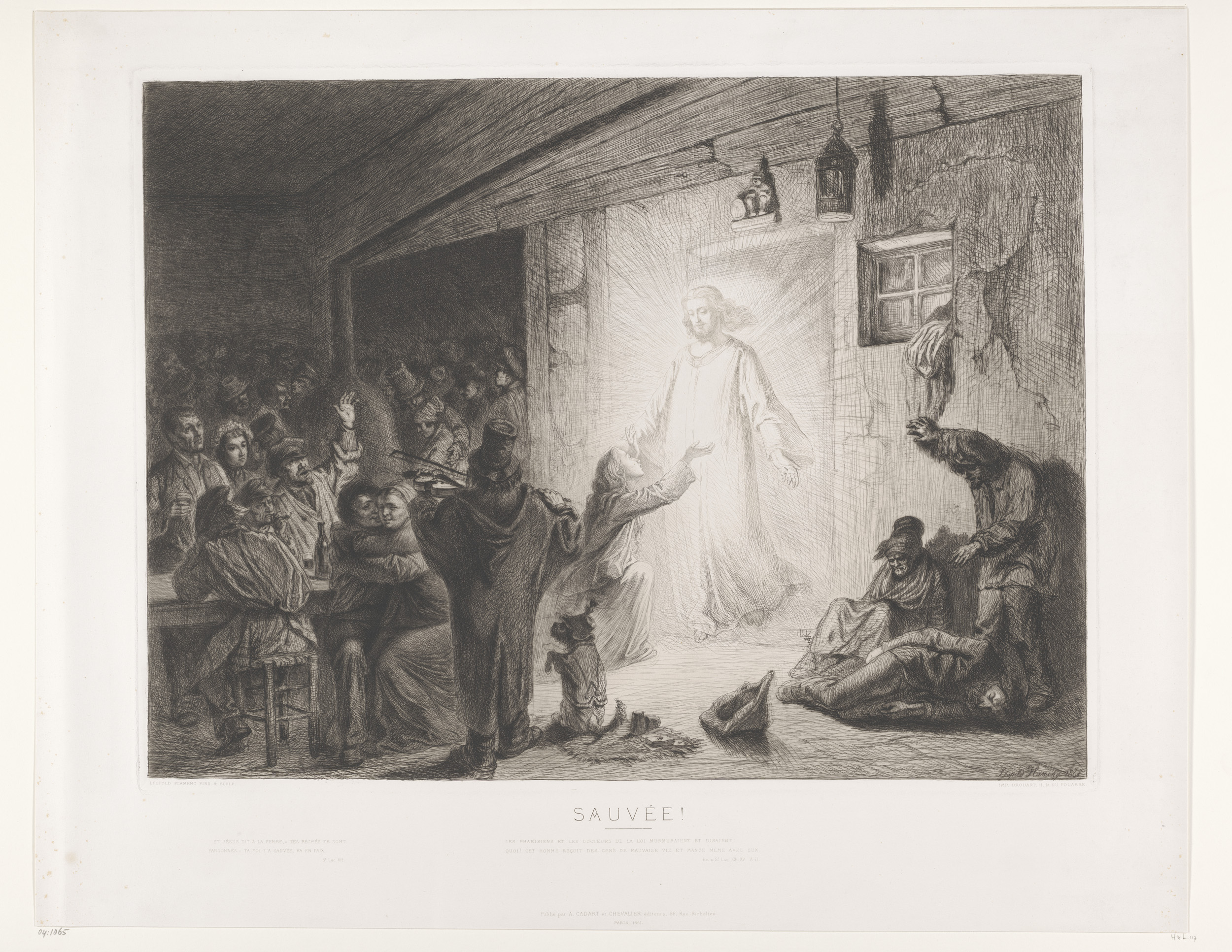 Christus verschijnt in een herberg, een jonge vrouw ...