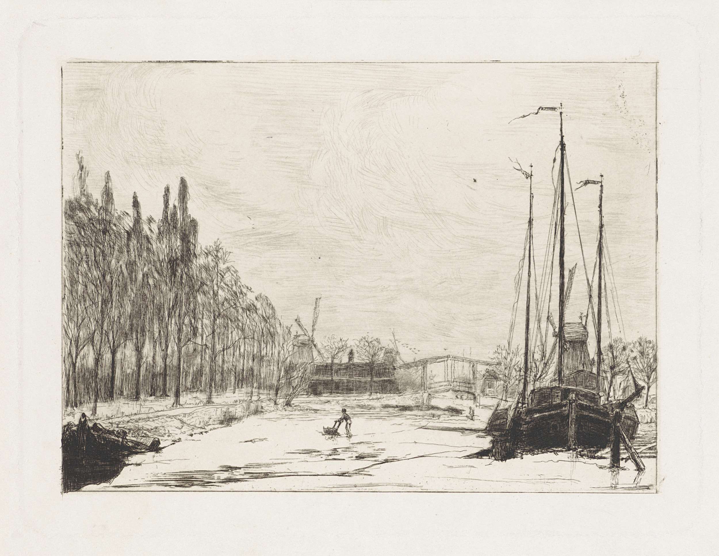 Gezicht op de bevroren Kattensloot te Amsterdam