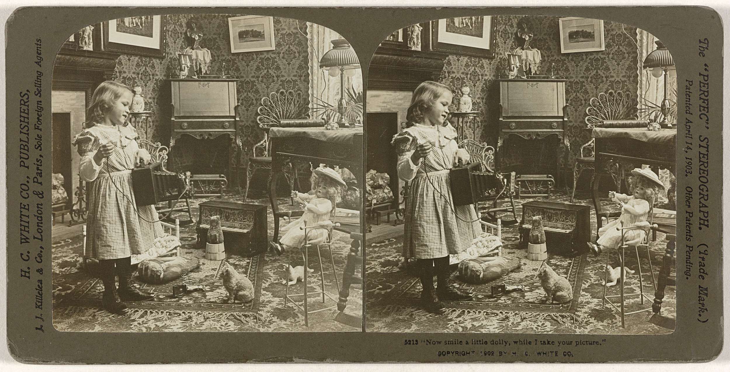 Meisje maakt een foto van haar pop in een huiskamer