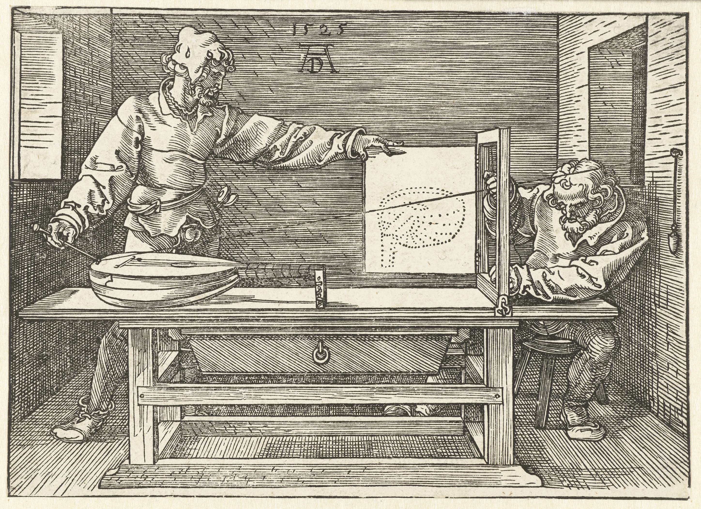 Tekenaar tekent een luit