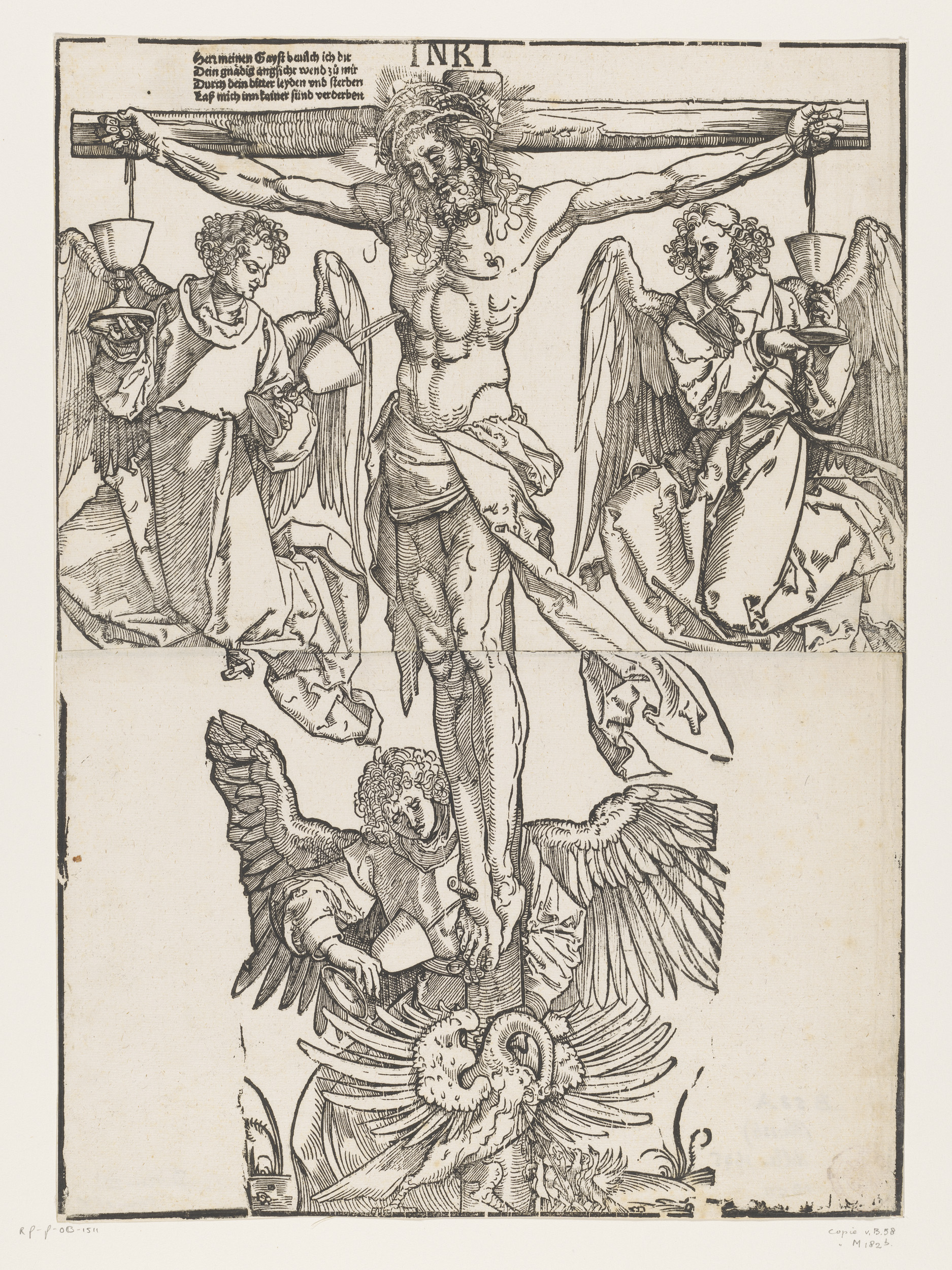 Bloed van Christus aan het kruis wordt opgevangen in...