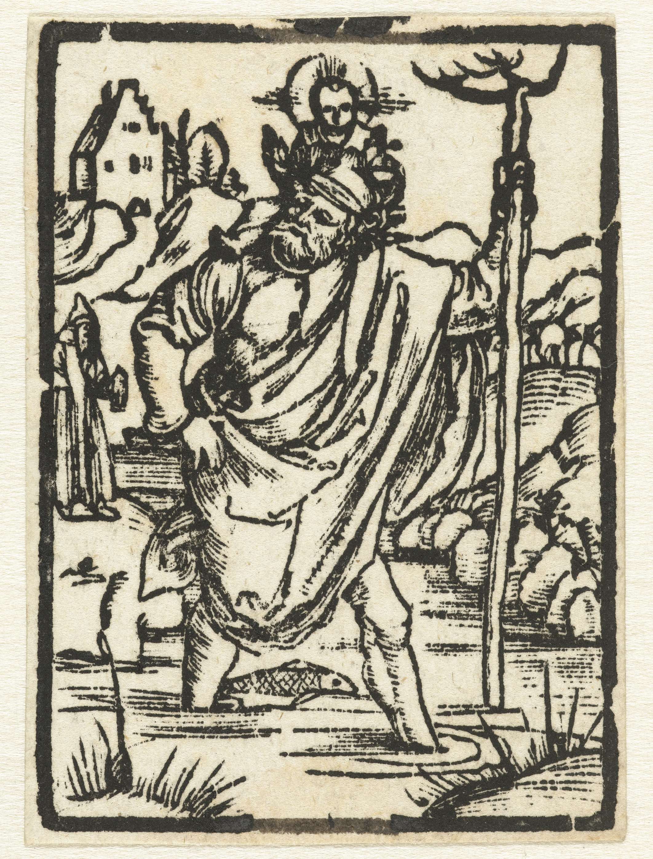 De Heilige Christoffel draagt het Christuskind