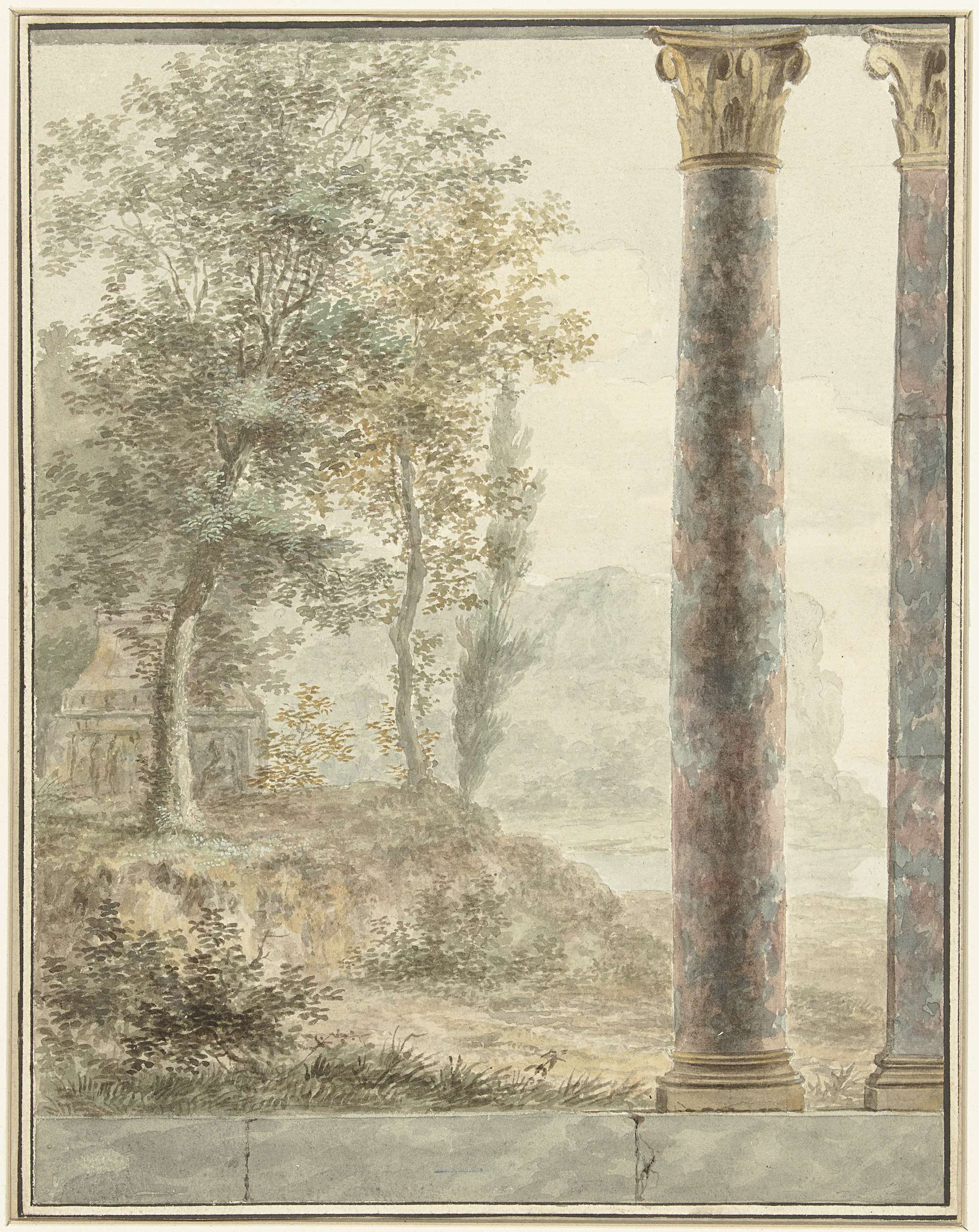 Ontwerp voor kamerbeschildering met landschap met fr...