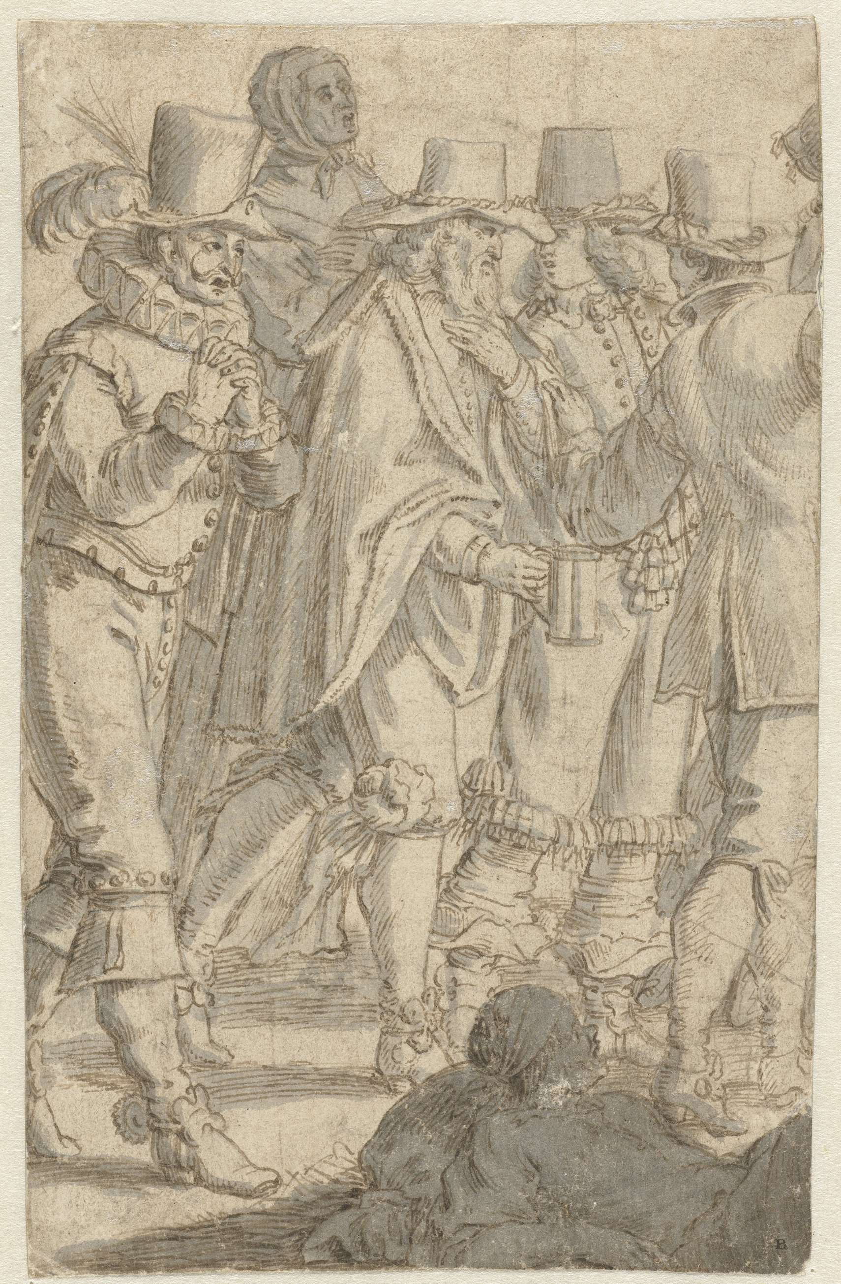 Schets van een edelman en drie tamboers