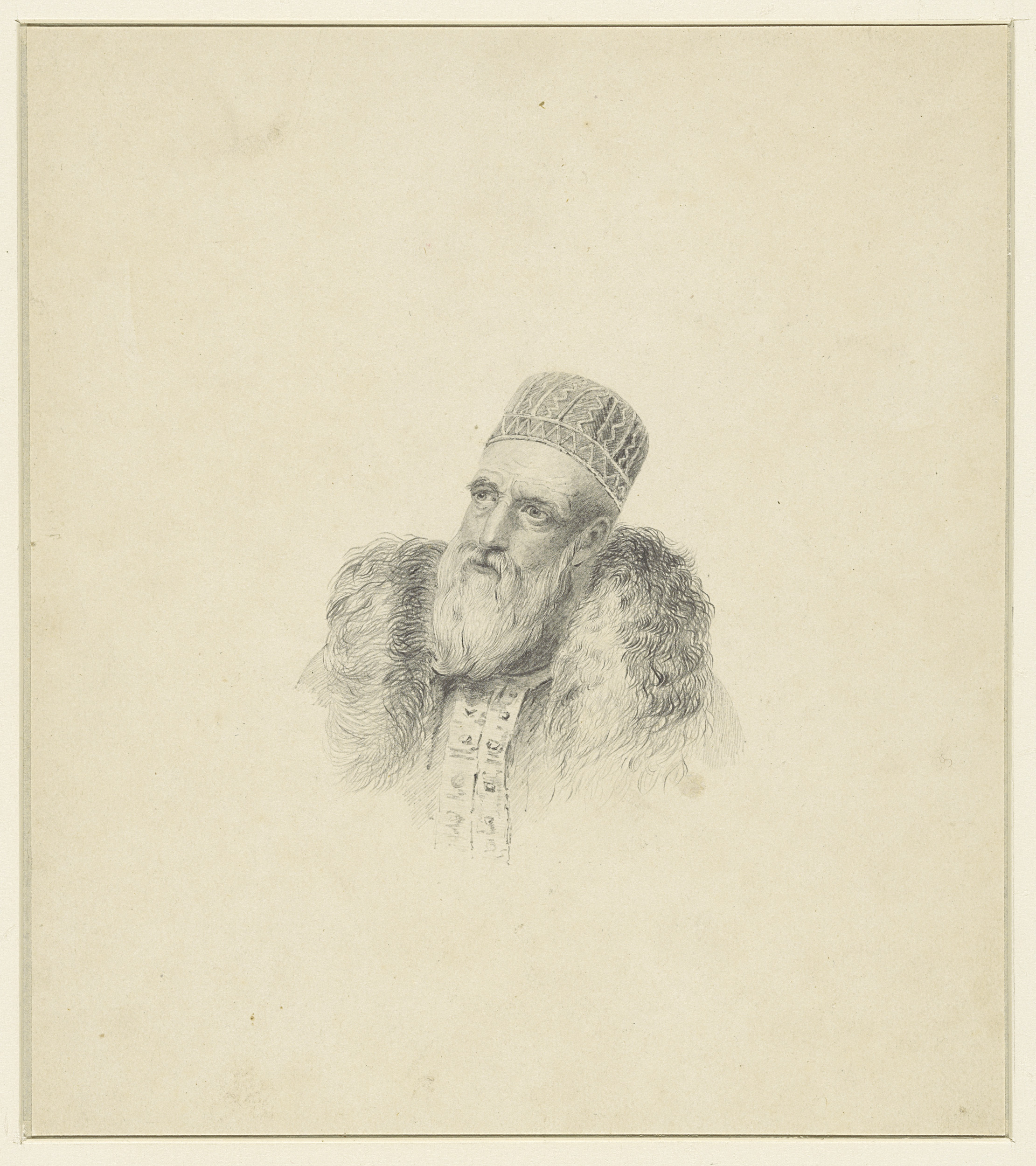 Portret van een heer met baard en snor, aanziend bor...