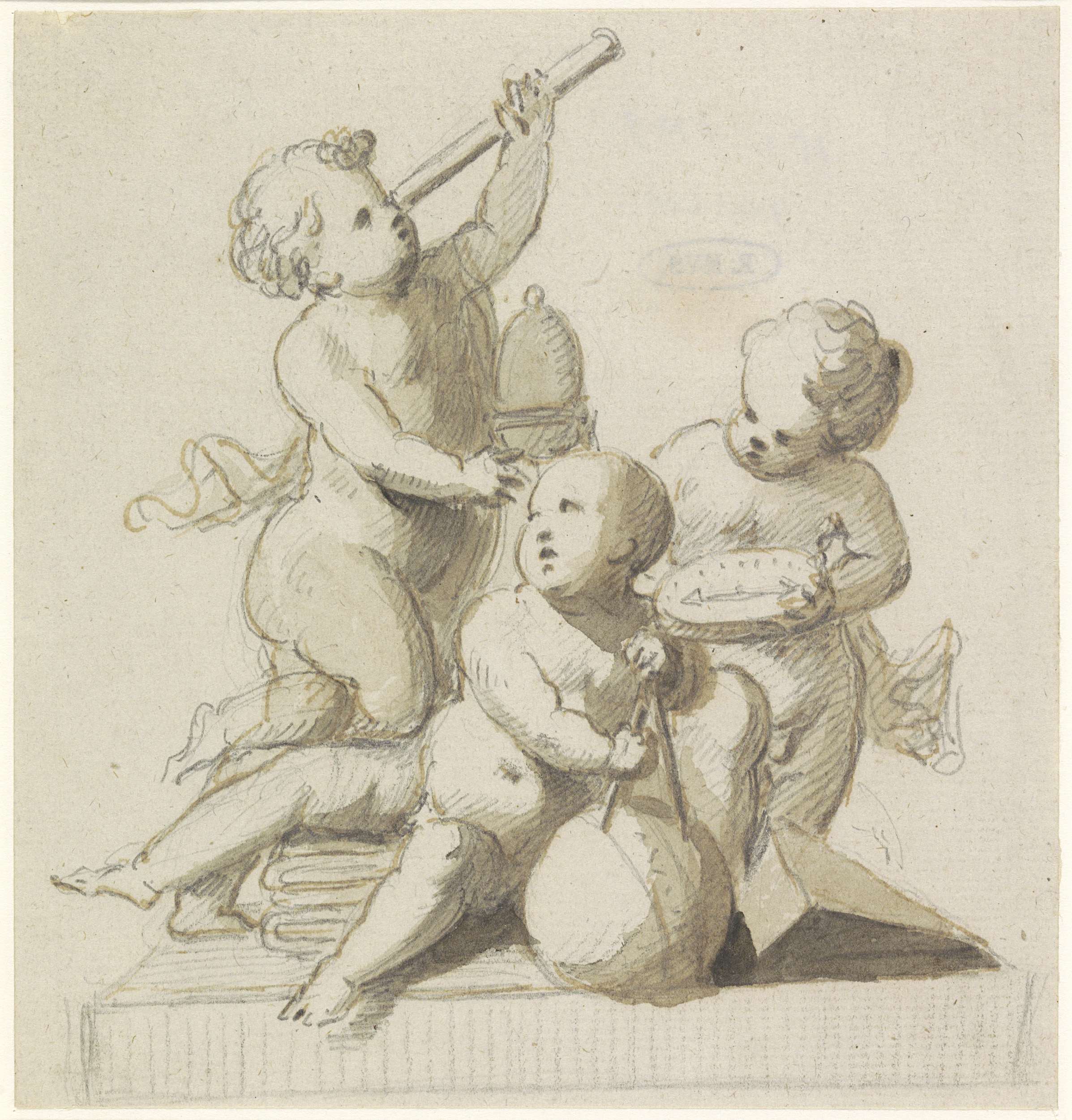 Decoratief ontwerp van putti met astronomische instr...