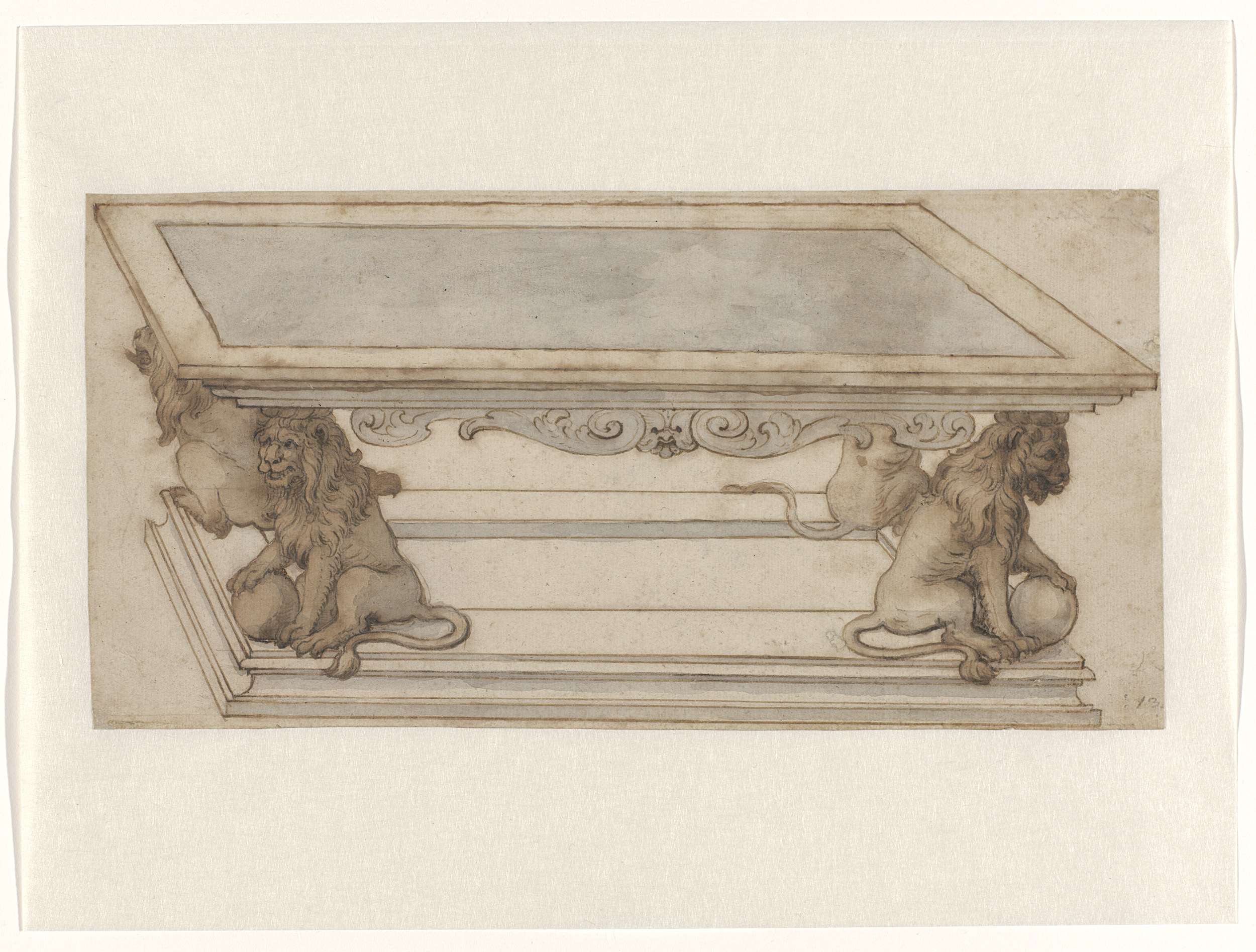 Ontwerp voor een laag altaar met een gebeeldhouwde v...