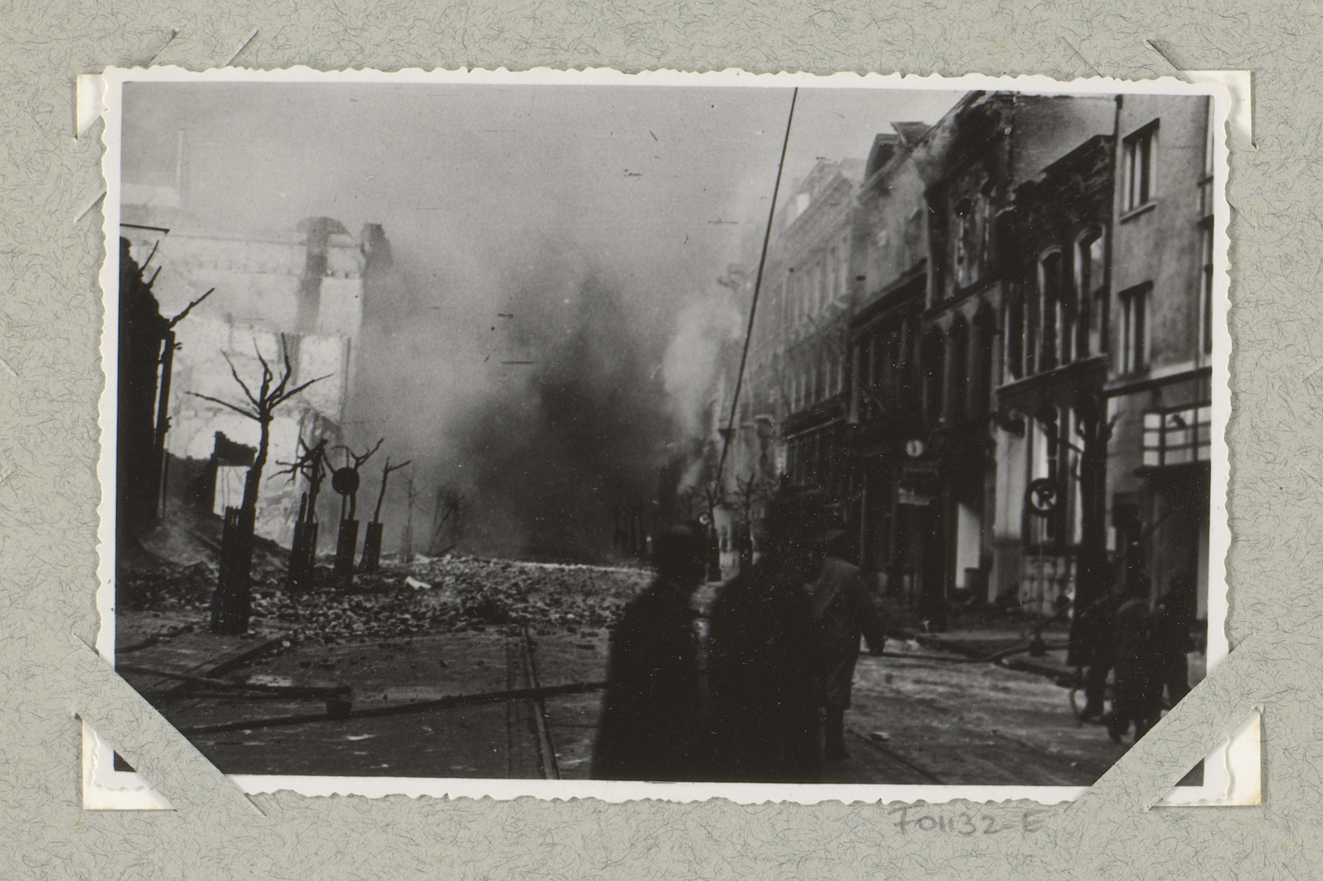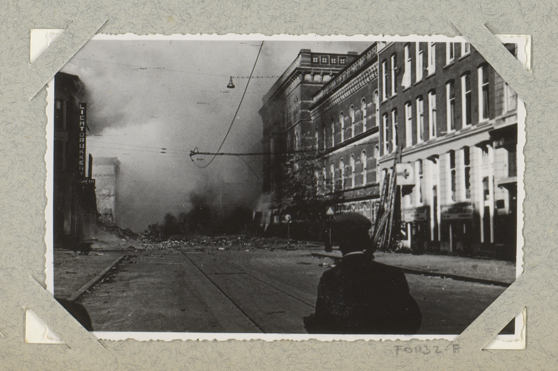 Ruïnes en rookwolken in de Van Oldebarneveltstraat t...