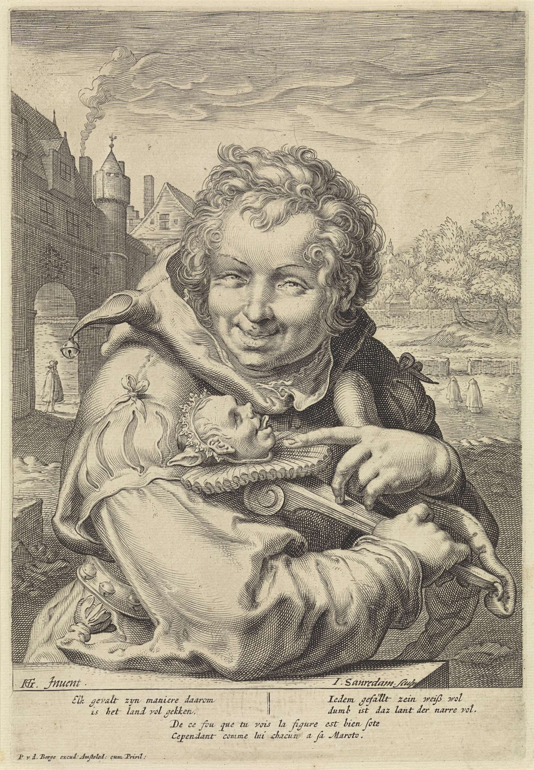 Lachende nar met een staf