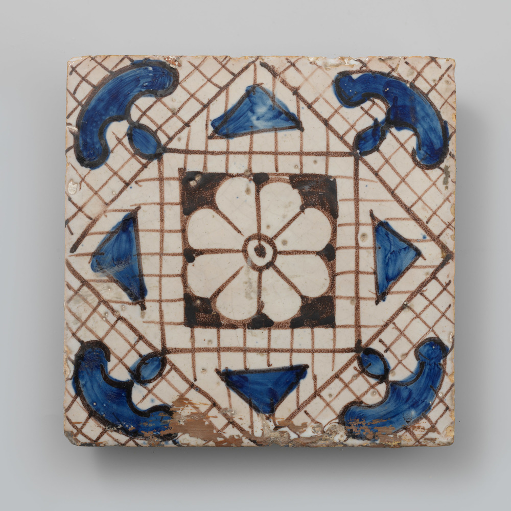 Tegel met een patroon in blauw en bruin