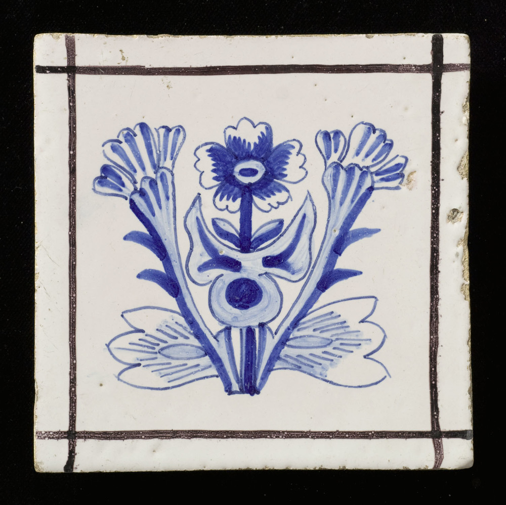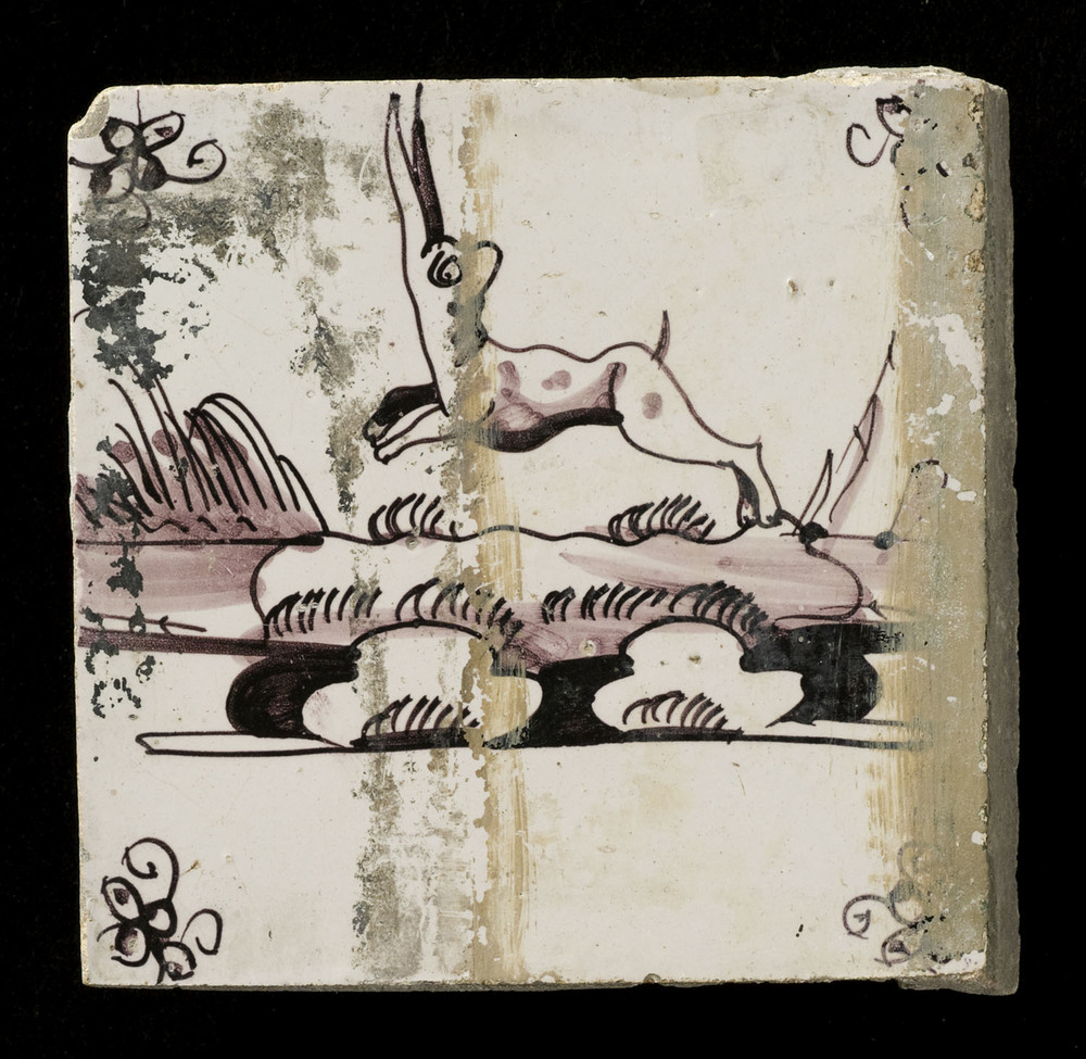 tegel van aardewerk in tinglazuur, voorstellende: la...