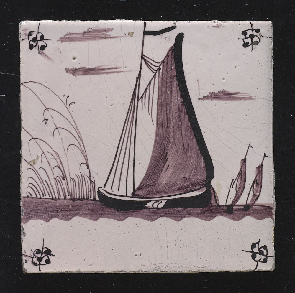 Tegel van keramiek, tinglazuur, voorstellende schepe...