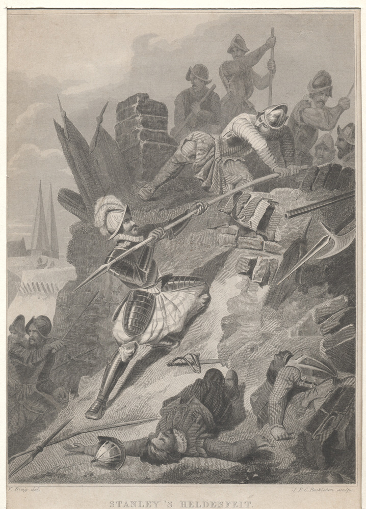 Gezicht op Stanley's Heldenfeit, staande op een muur...