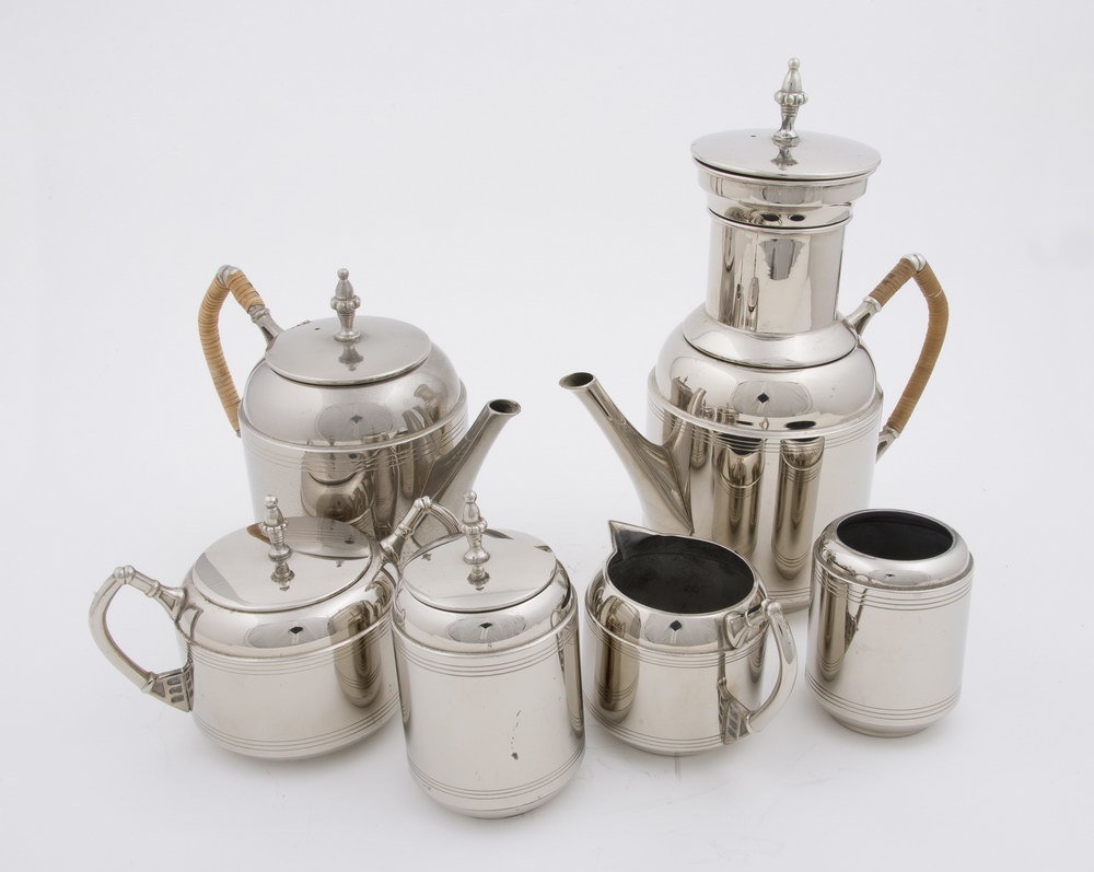 Koffie- en theeservies van vernikkeld metaal, vervaa...