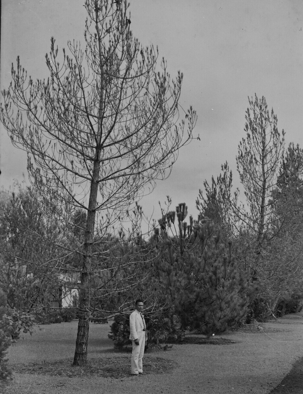 Een man temidden van verschillende soorten naaldbome...