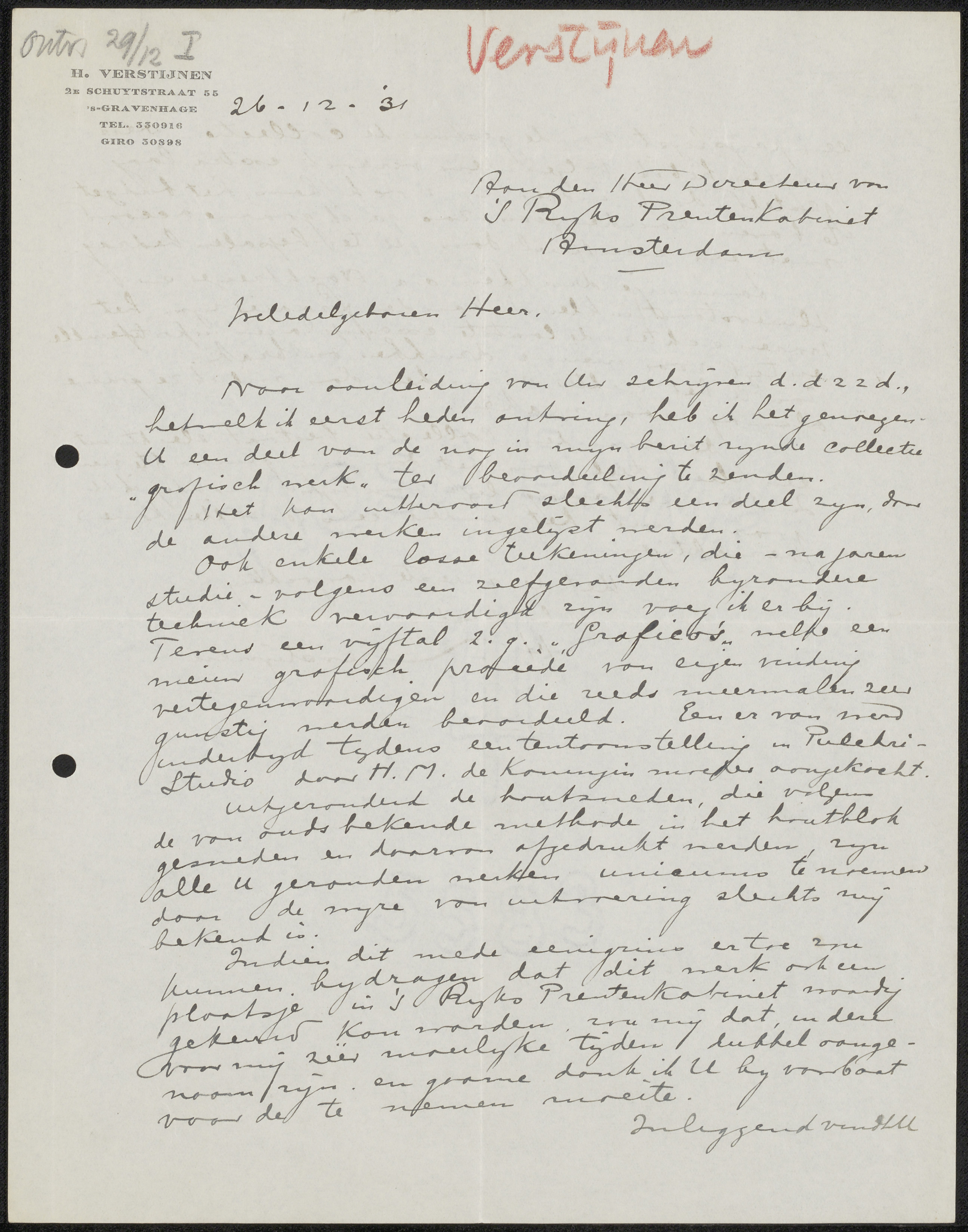 Brief aan jonkheer Hendrik Teding van Berkhout (1879...