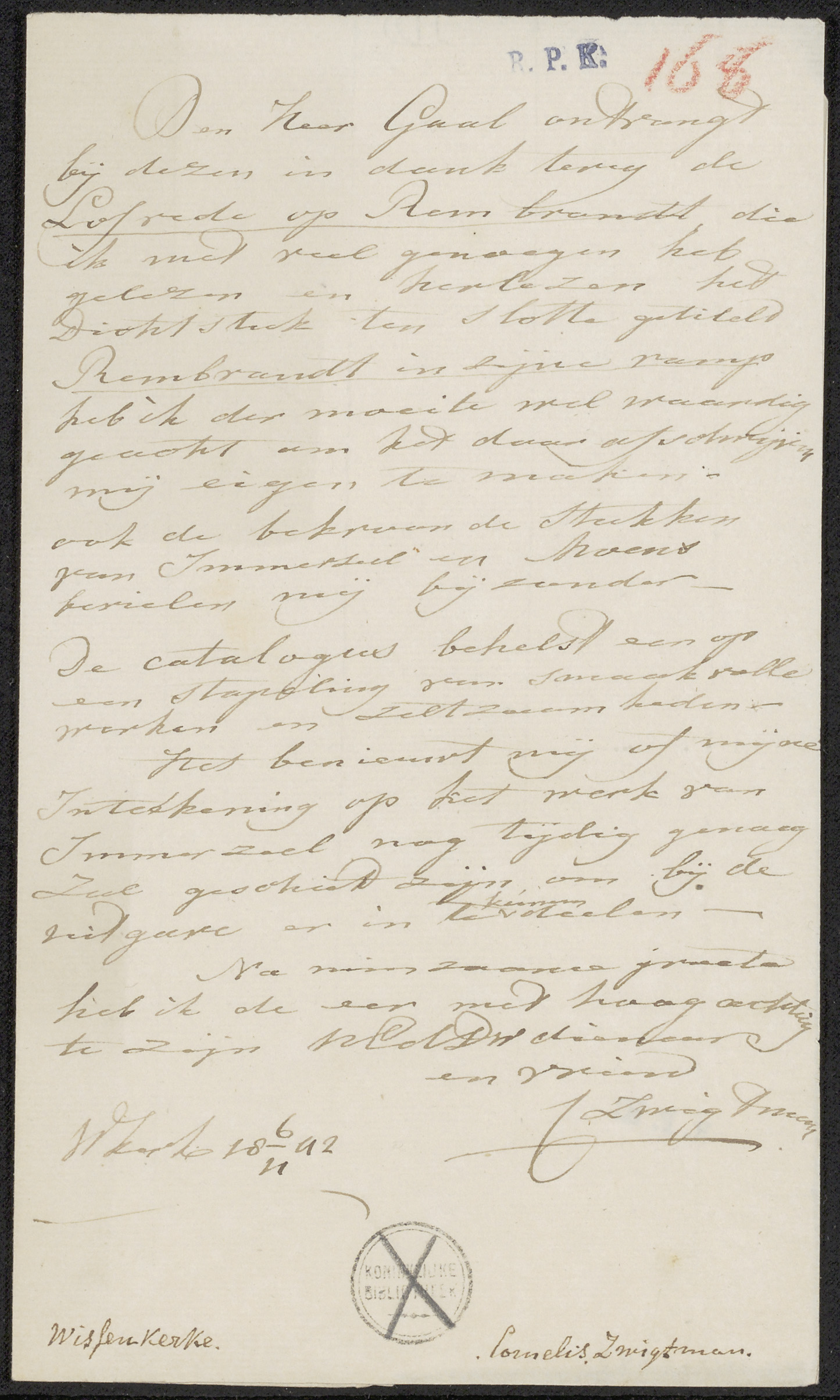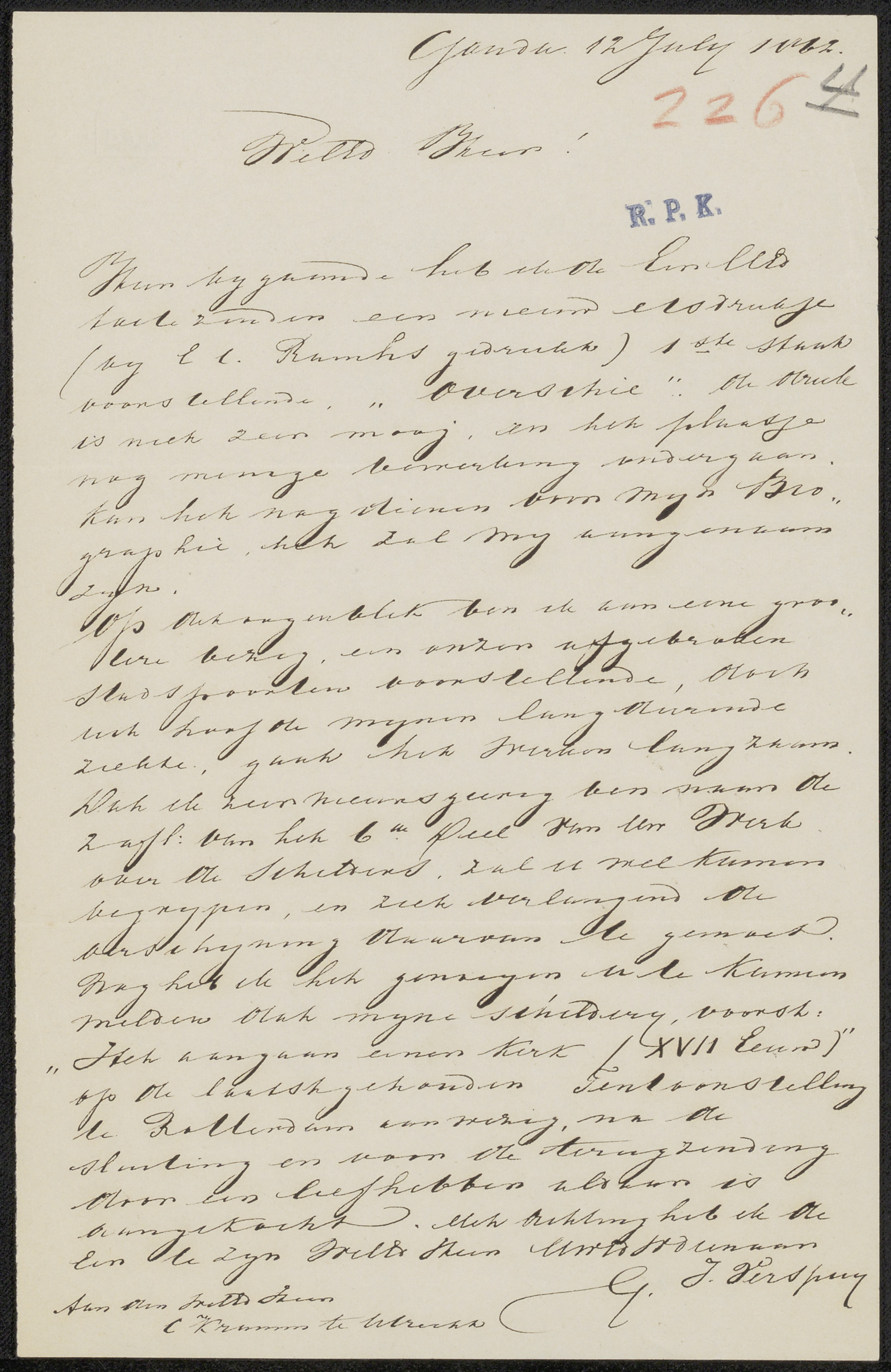 Brief aan Johan Philip van der Kellen