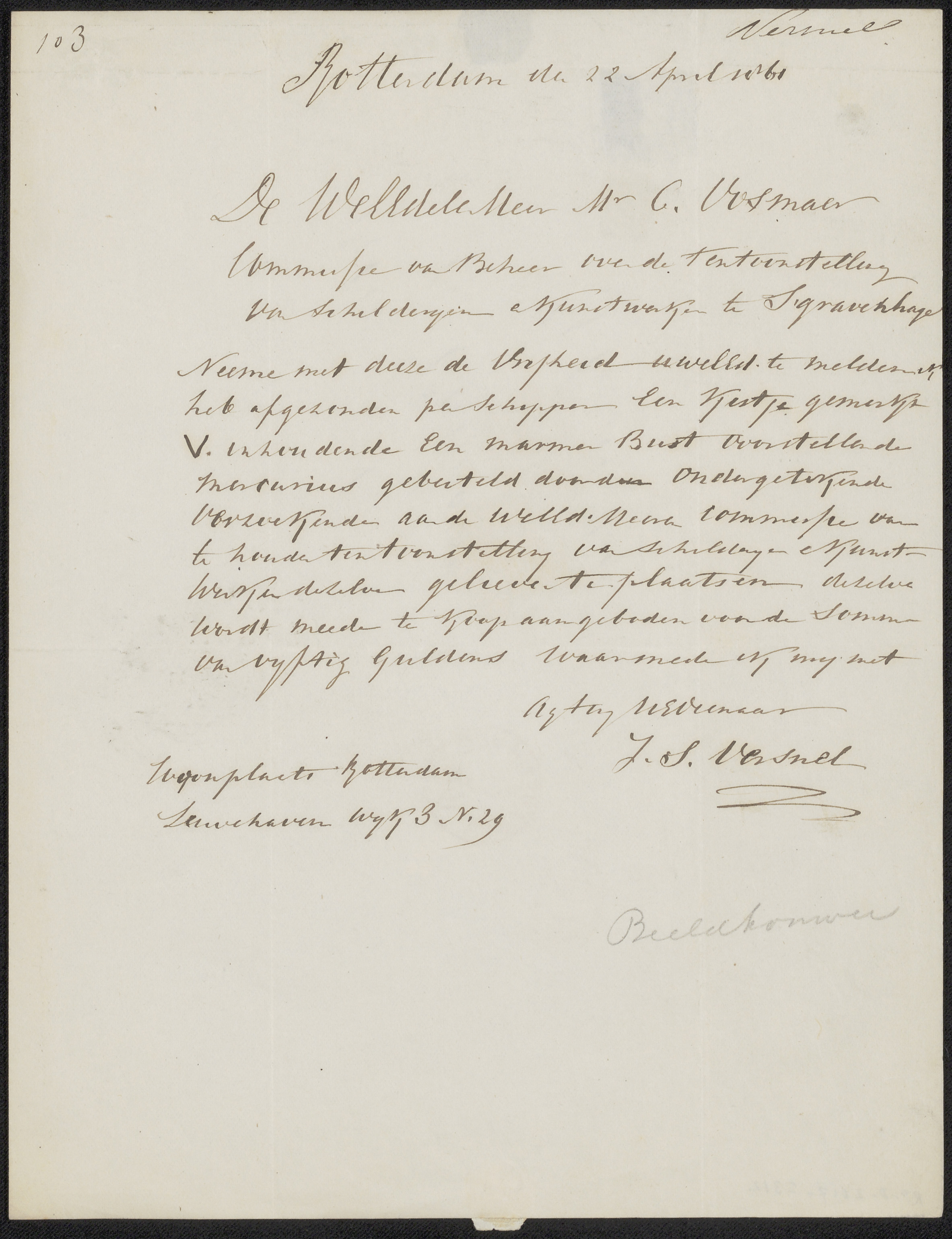Brief aan de commissie van de Tentoonstelling van Le...