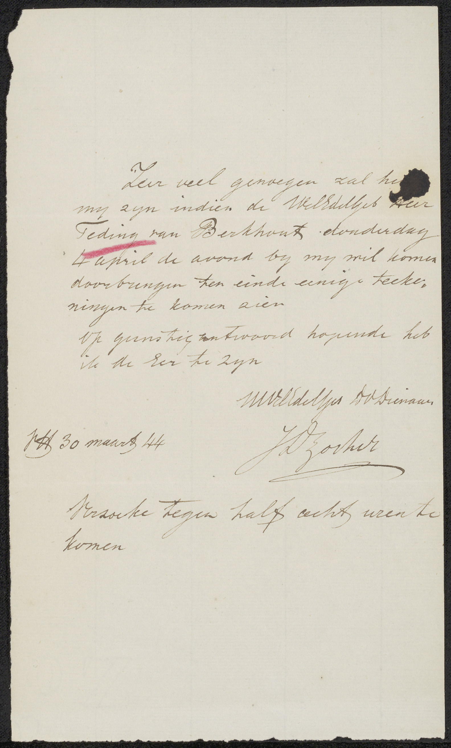 Brief aan baron Huibert Gerard Nahuys van Burgst
