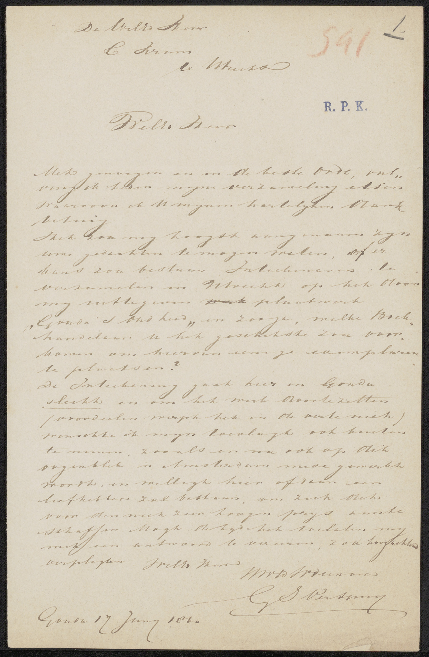 Brief aan Christiaan Kramm