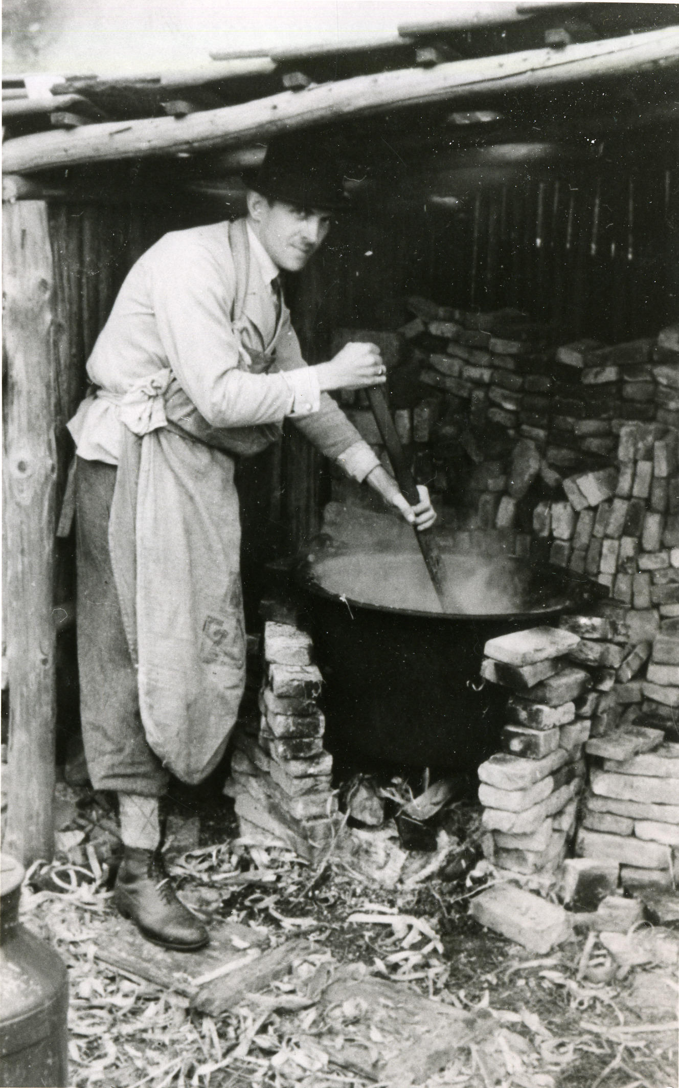 Evacués eten in het Nederlands Openluchtmuseum, 1944...