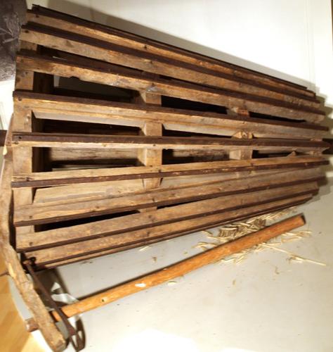 Dorsrol van hout met trekbalk gebruikt voor het dors...