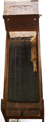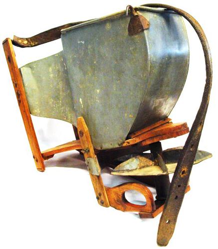 Zaaiviool van hout en metaal gebruikt om fijne zaden...