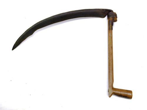 Schoffelwerktuig van hout en ijzer gebruikt om onkru...