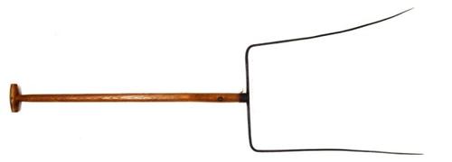 Koolzaadvork van metaal met houten steel gebruikt om...