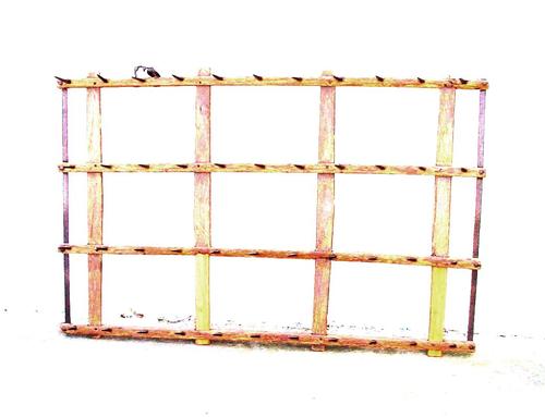 Eg of raameg van hout met metalen tanden gebruikt om...