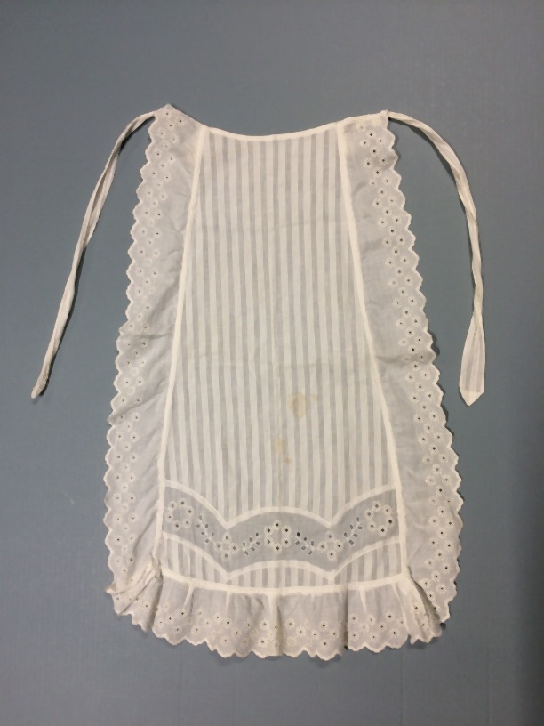 Wit katoenen schortje met langs drie zijden machinal...