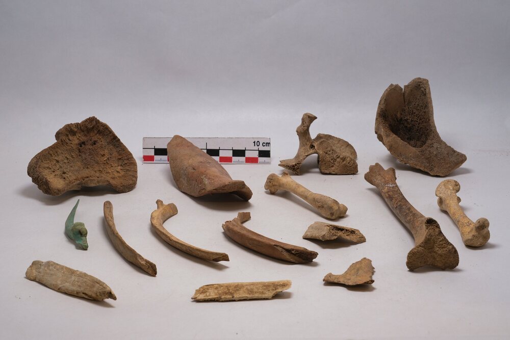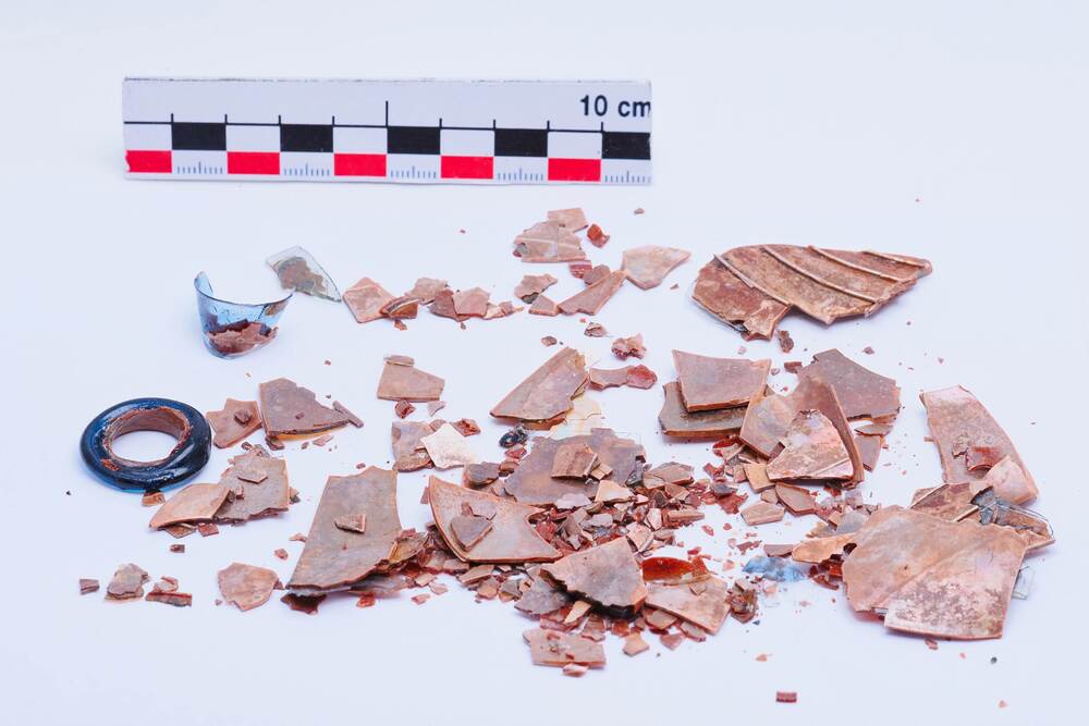 Fragmenten, leer/ijzer/schelp/schaal/pijpaarde,