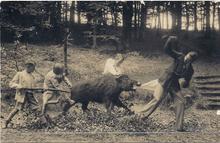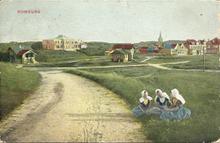 Biggekerke, 2 boeren, 2 boerinnen bij kar met 2 paarden