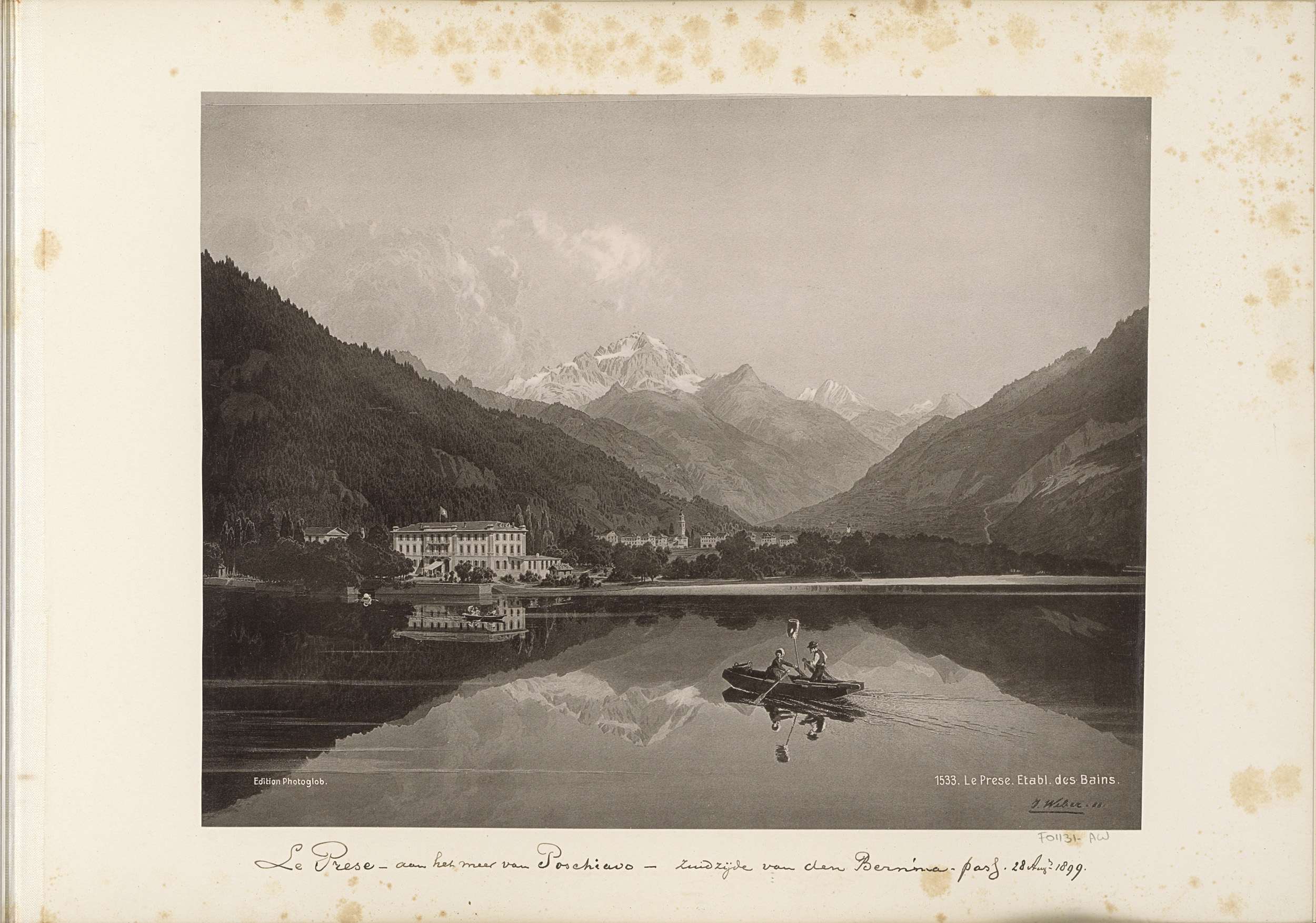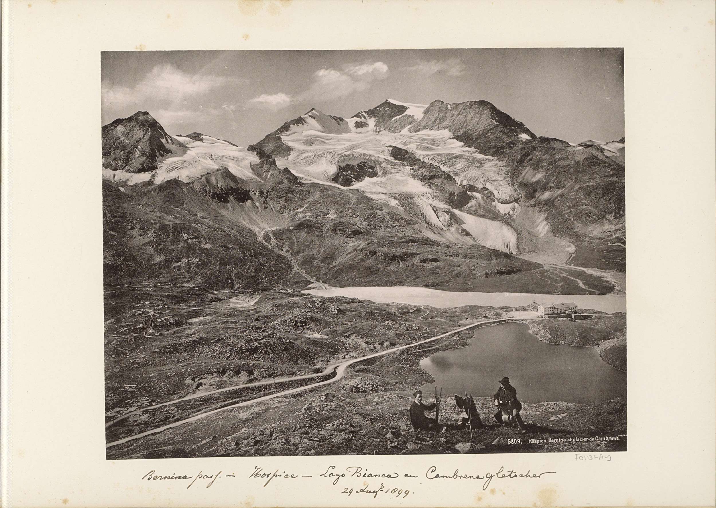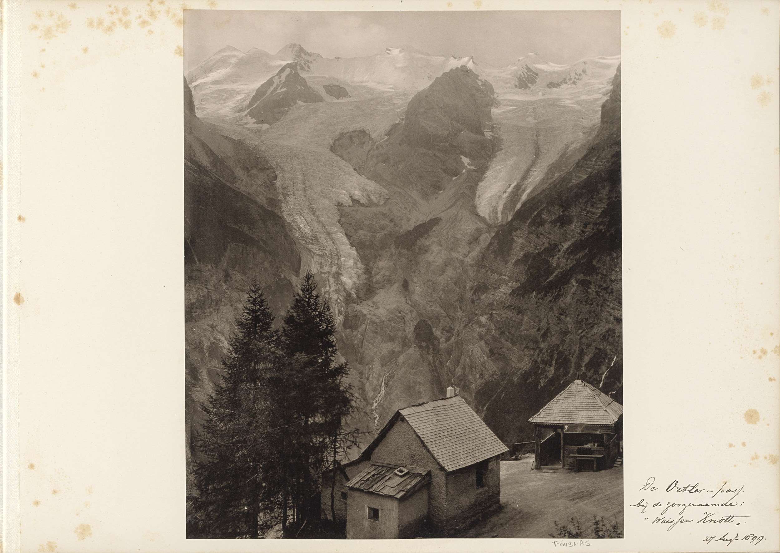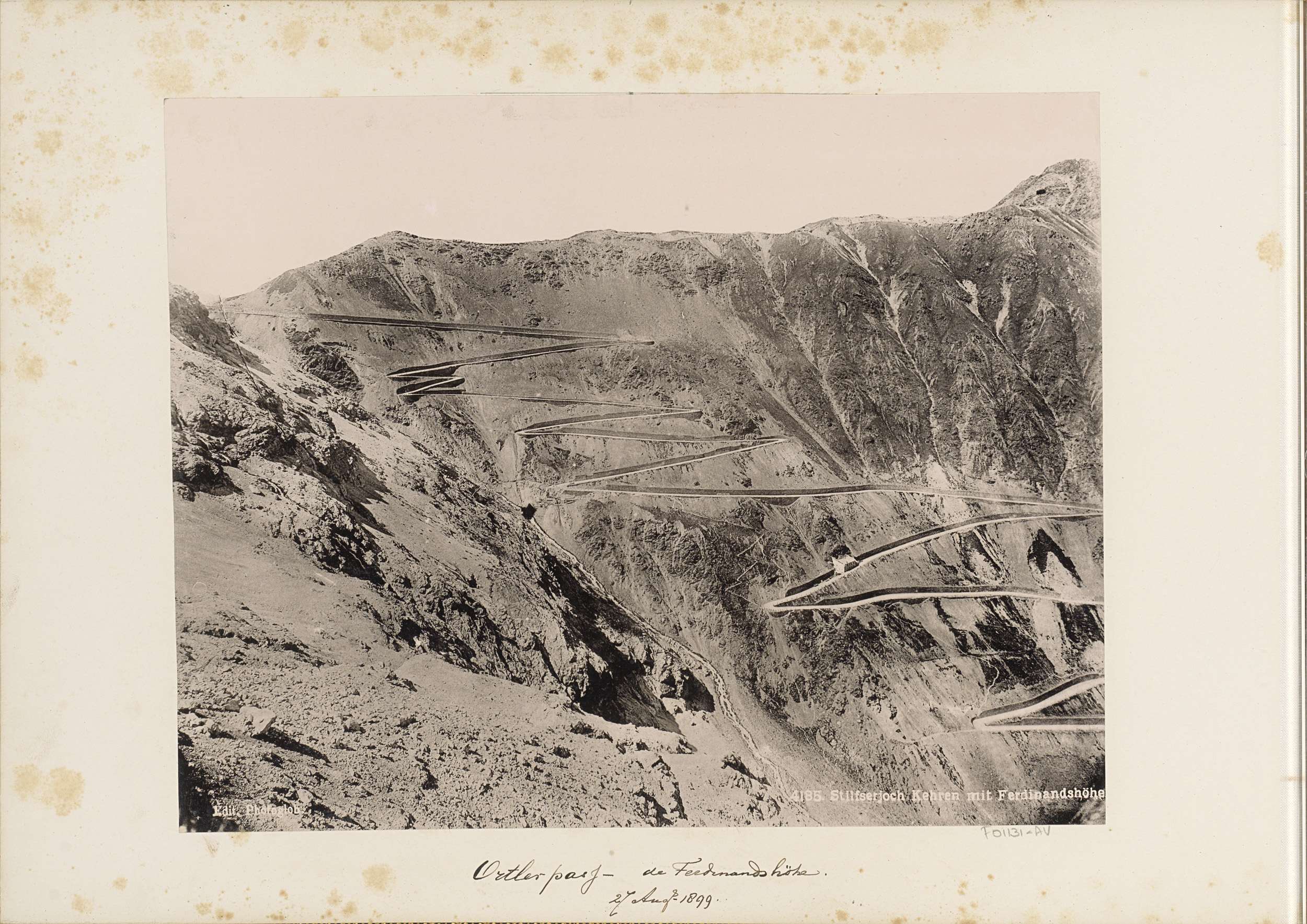 Gezicht op de Stelviopas en de uitspanning Ferdinand...
